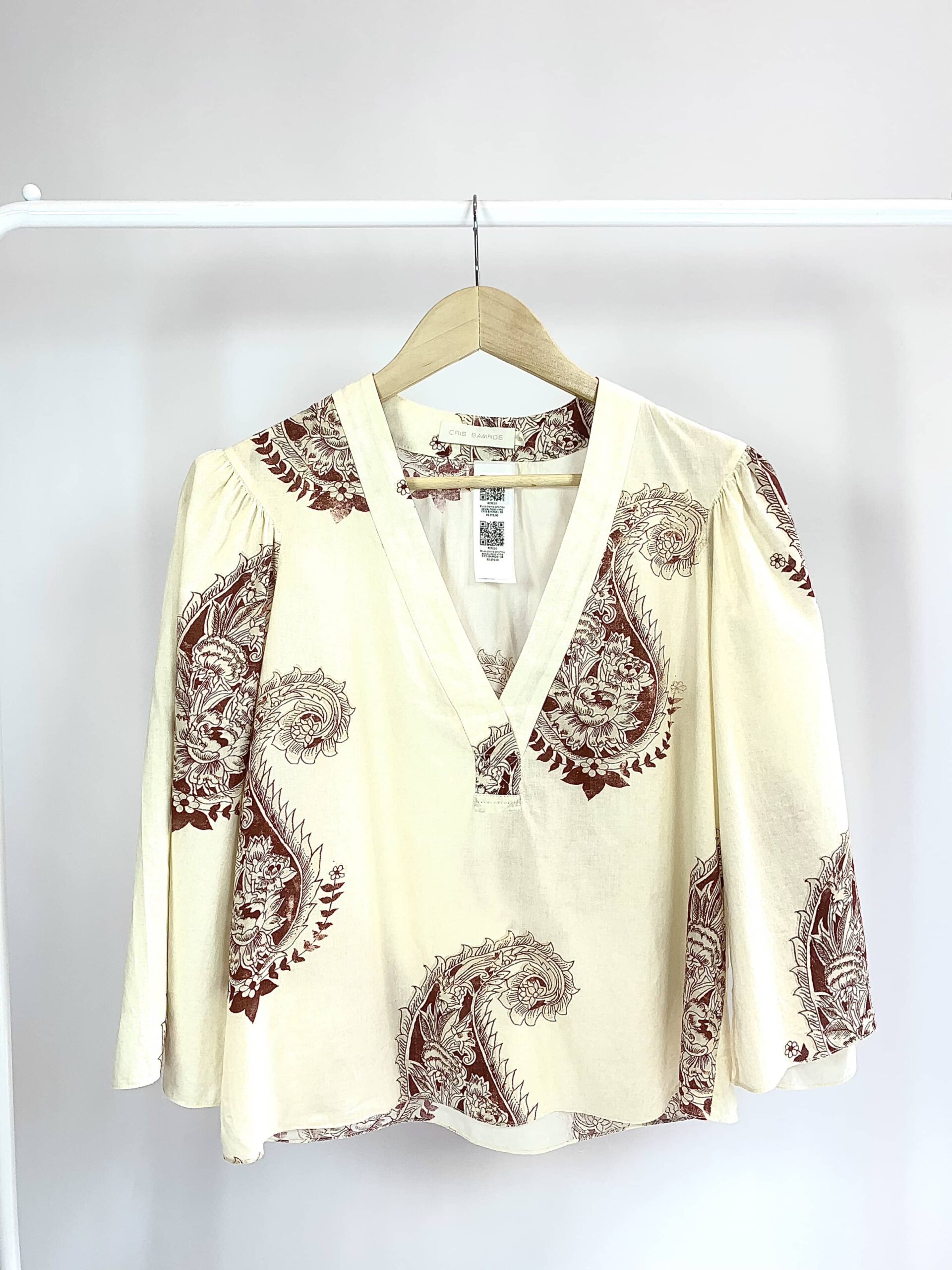 Cropped manga bufante branco linho ARGALJI - M