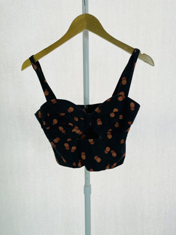 Blusa cropped azul marinho estampa abacaxi laranja ABRAND – 36