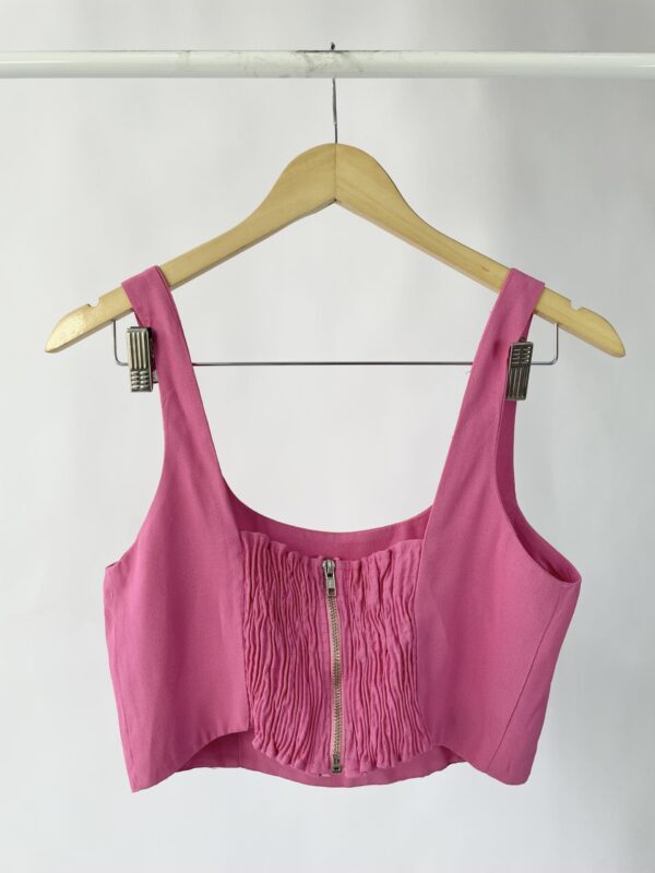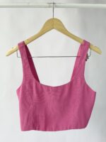 Blusa cropped rosa com lastex AHKA – M