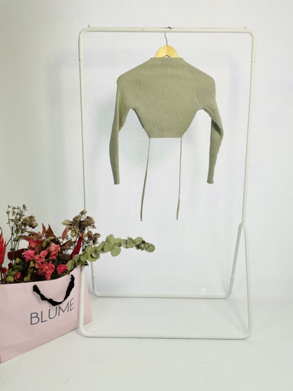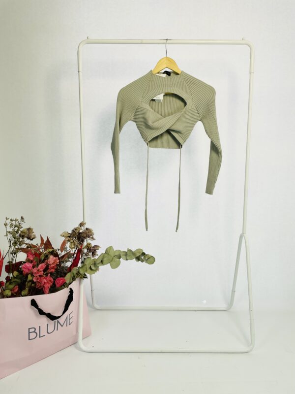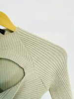 Blusa cropped tricot mangas longas cinza com recorte no decote LITT – P