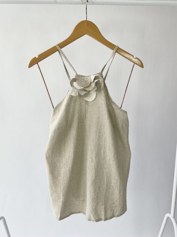 Blusa linho cru detalhe flor DU - P - VENDIDO SISTEMA OTO