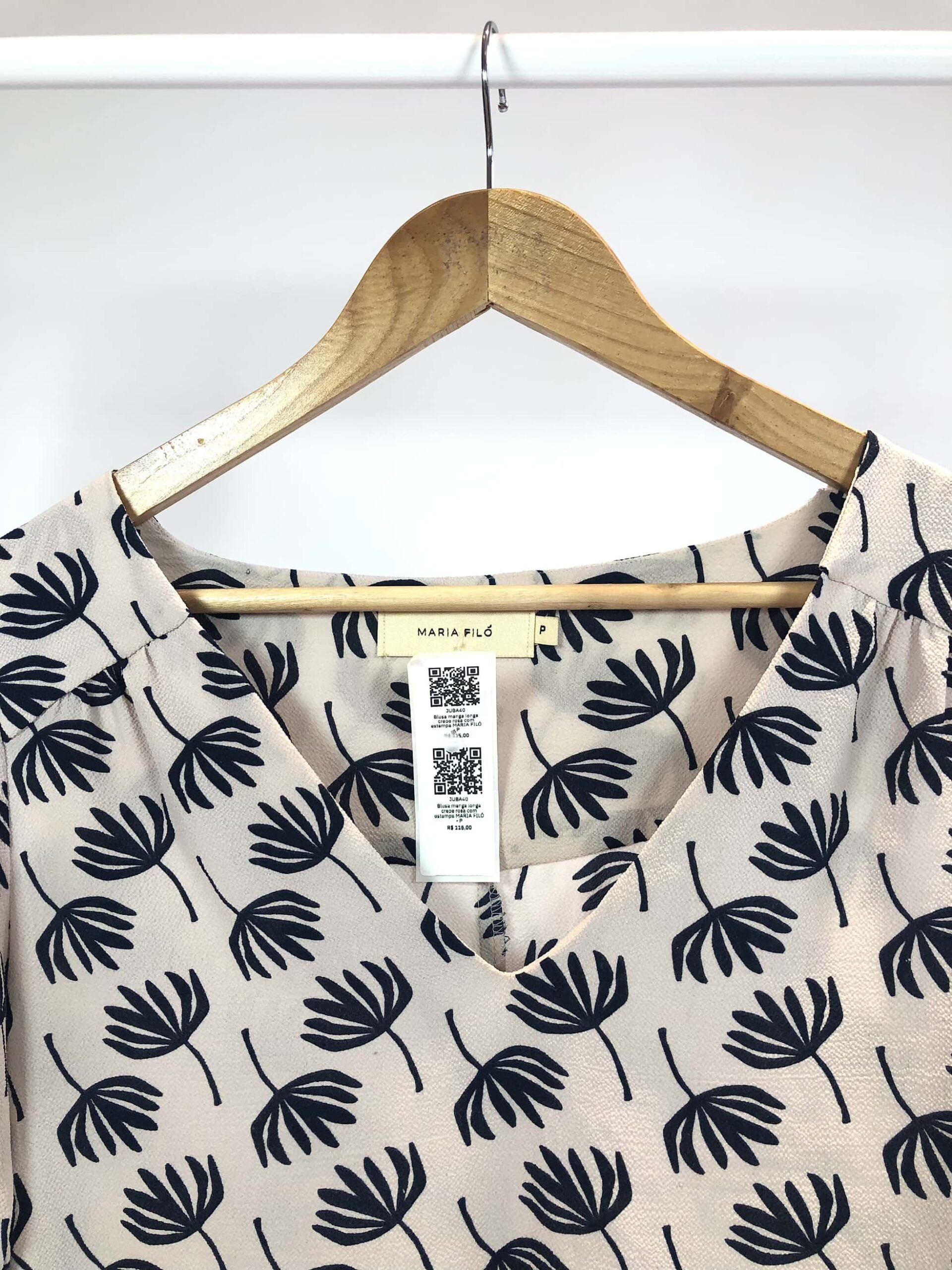 Blusa manga longa crepe rosa com estampa MARIA FILÓ – P – VENDIDO SISTEMA OTO