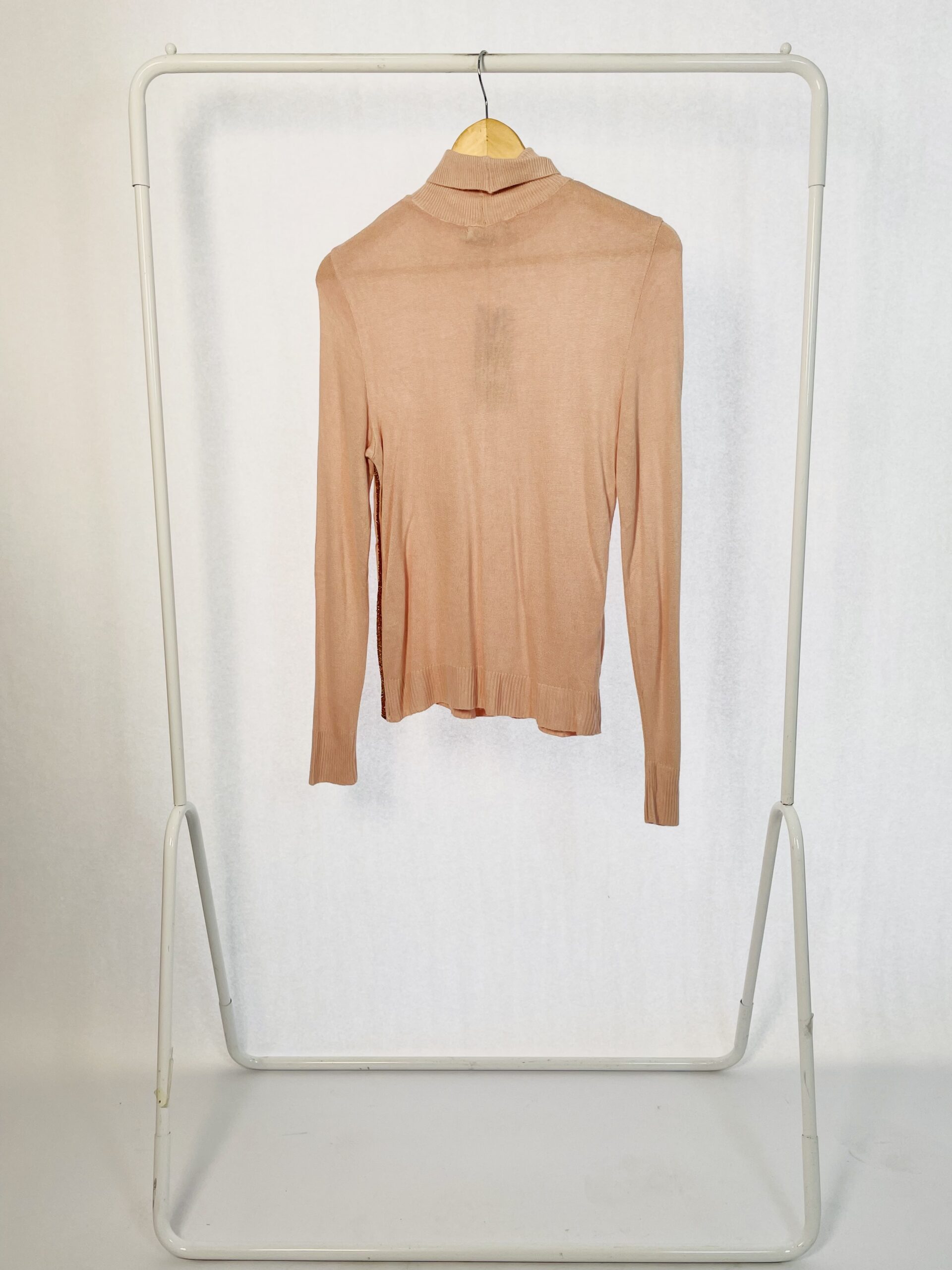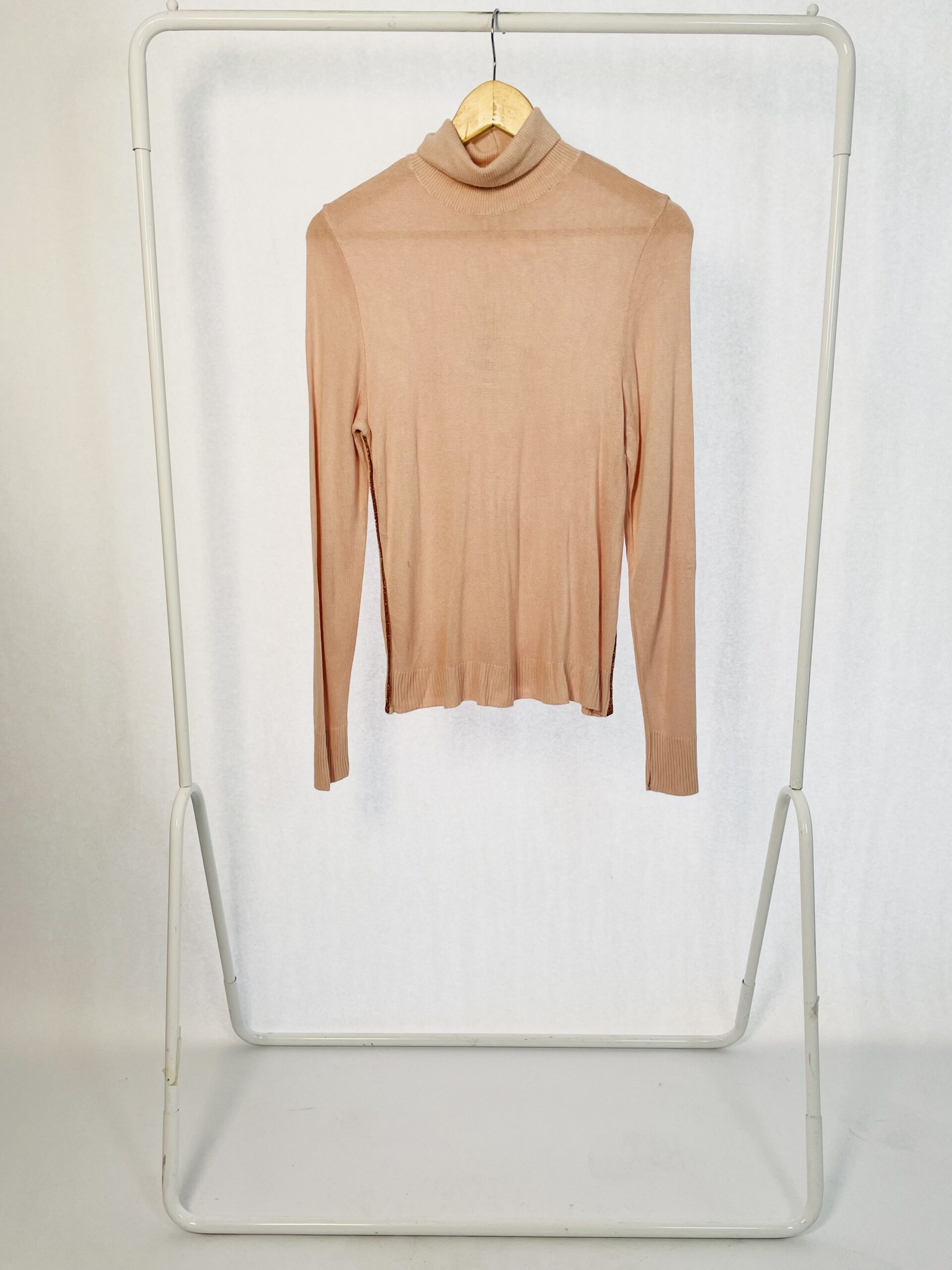 Blusa Tricot Gola alta Rosa com lateral Bronze de brilhos ABRAND – P