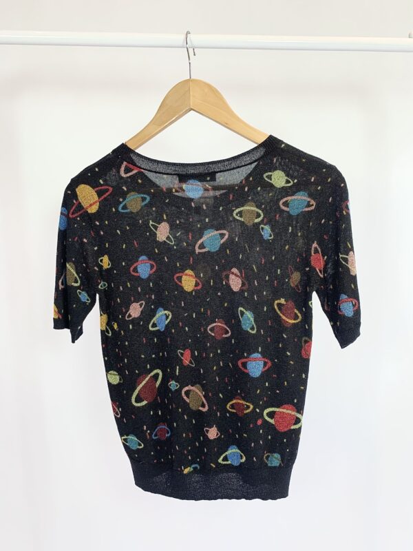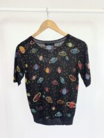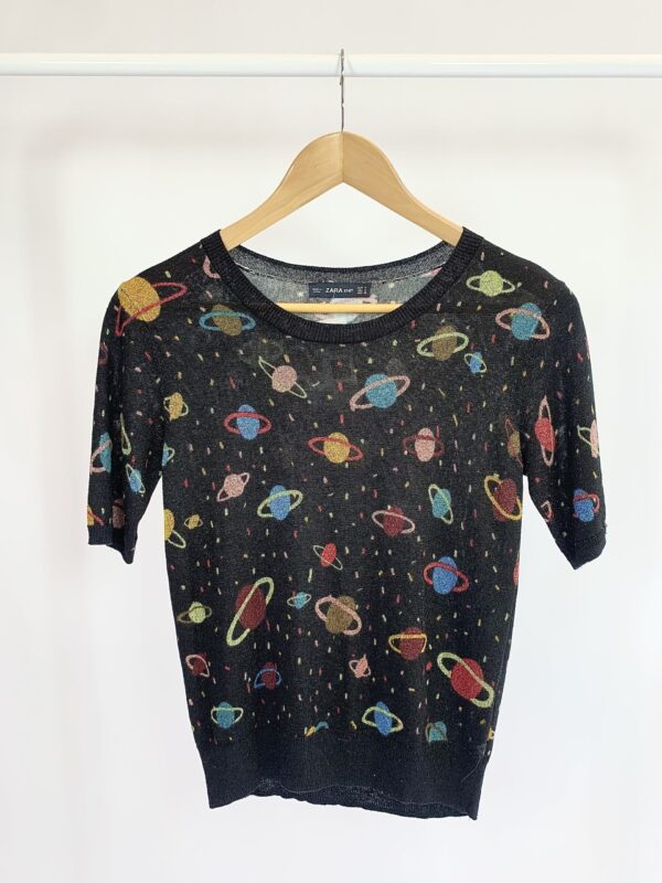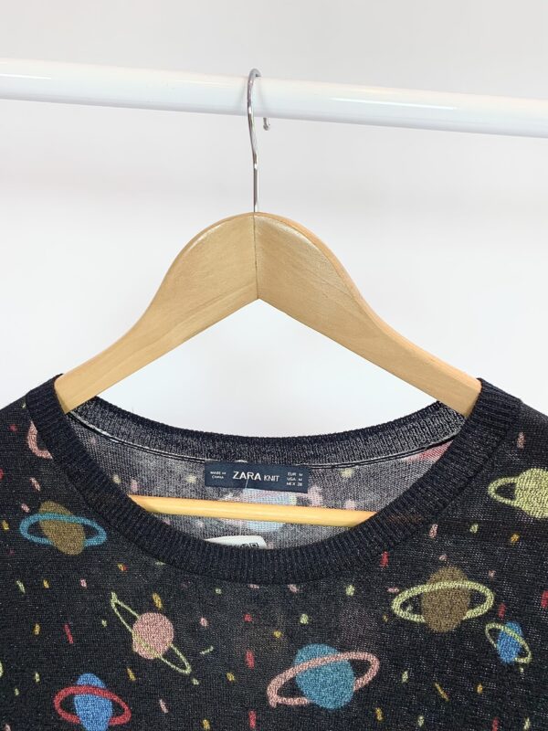 Blusa tricot preta estampa planeta ZARA – M – vendido sistema oto
