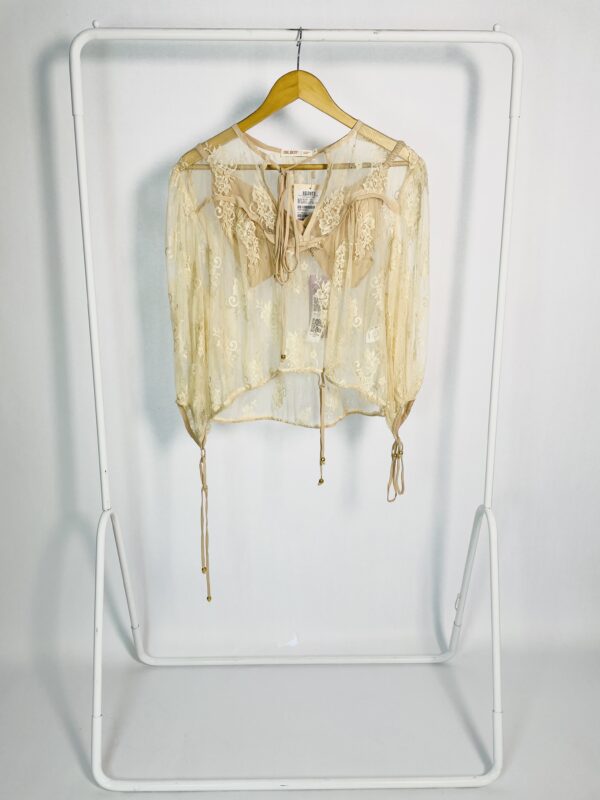 Conjunto Jaqueta Bege com esverdeado e Calça Bege Bolsos Cargo Com botões Preto REVERSA - P