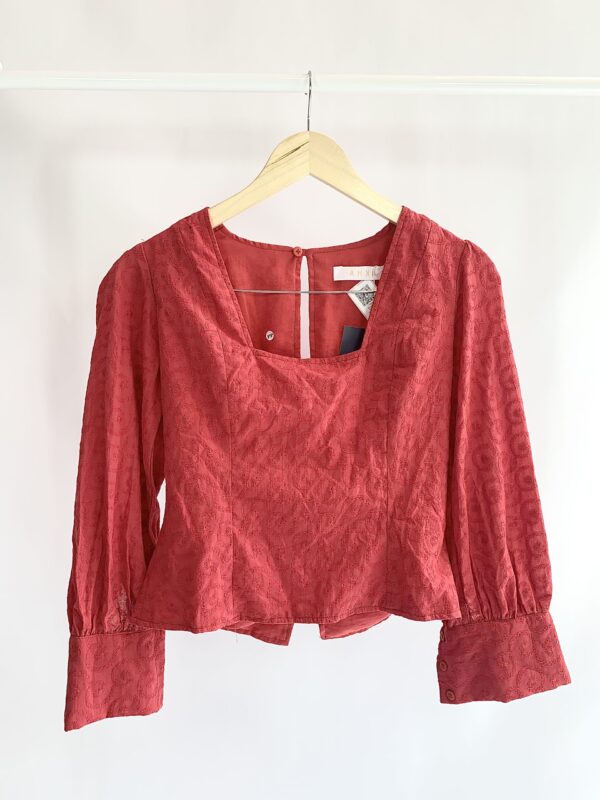Blusa vermelha bordada decote quadrado AHKA – P (nunca usada)