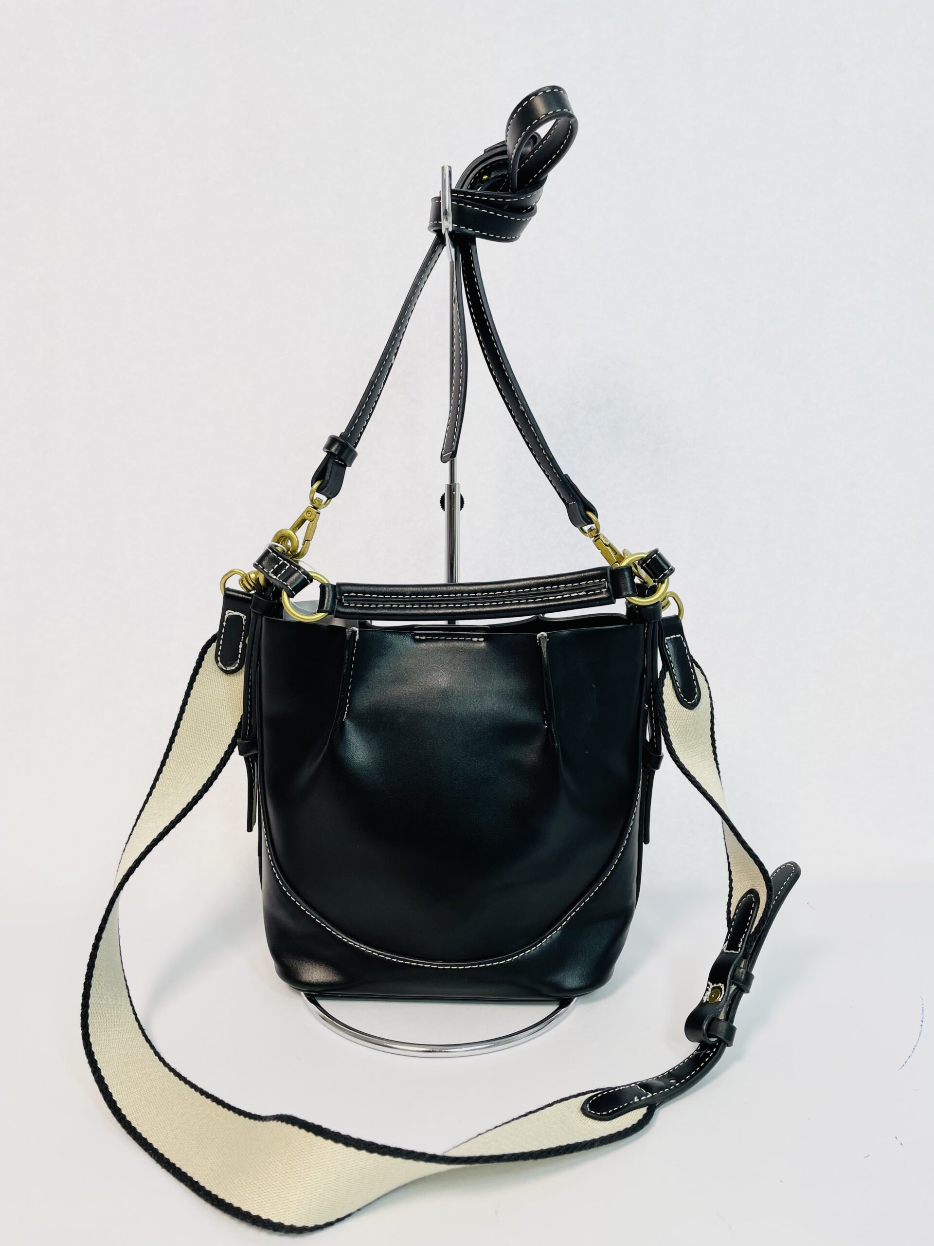 Bolsa pequena caramelo com duas alças e pespontos brancos ZARA - VENDIDO SISTEMA OTO