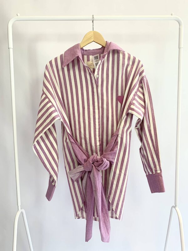 Camisa algodão listras off e lilás amarração frente GINGER – 36 – VENDIDO SIST OTO