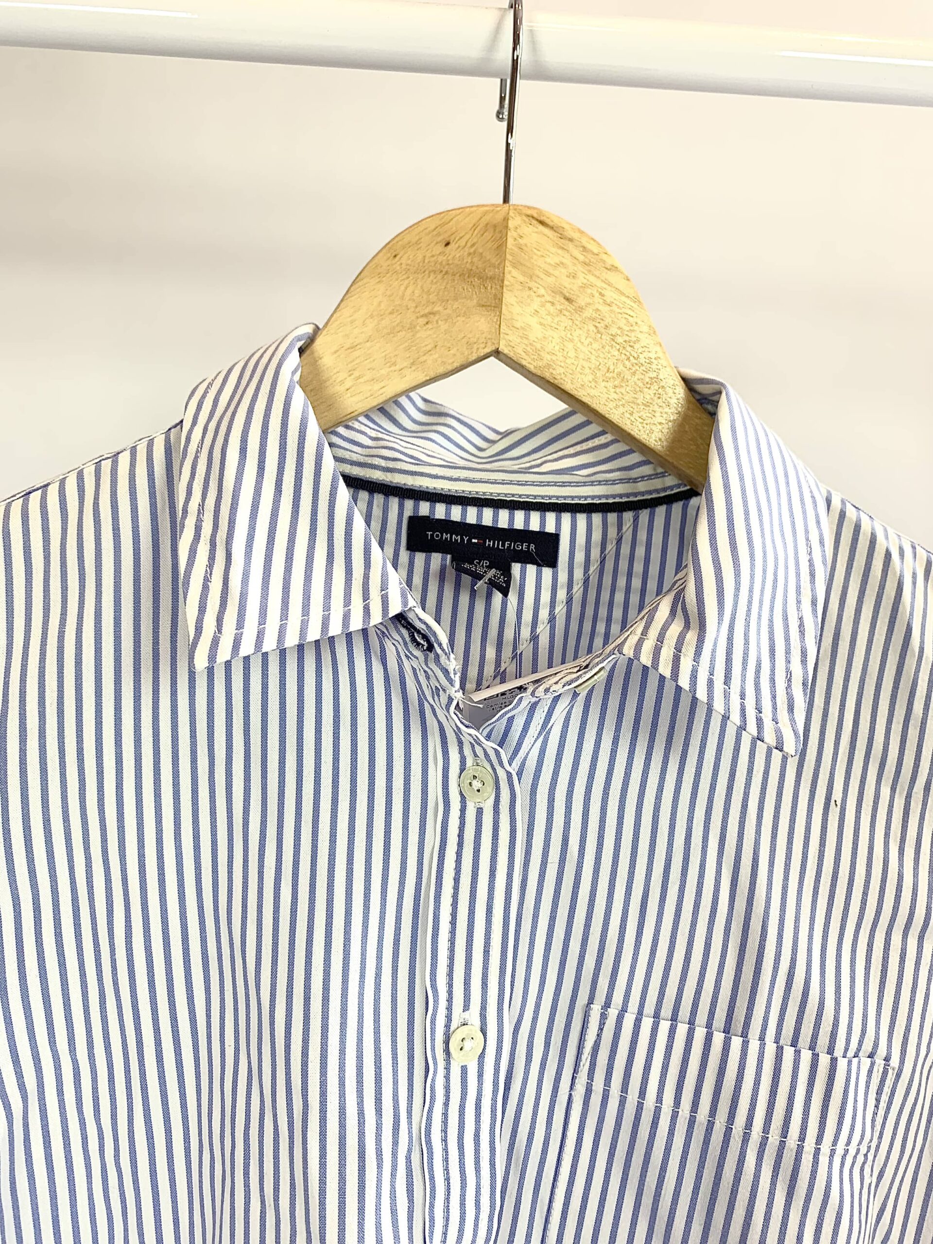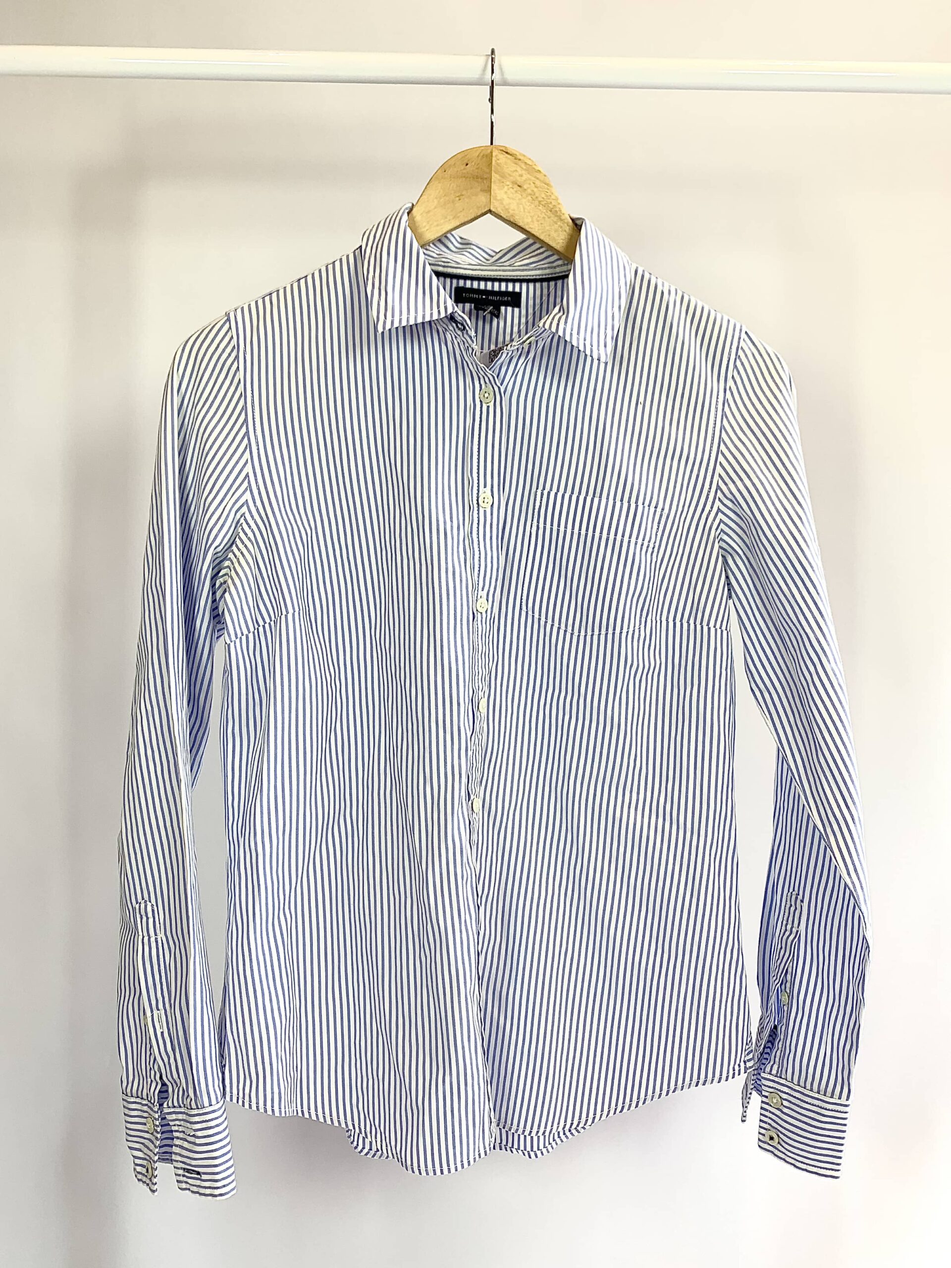 Camisa branca com listra azul TOMMY HILFGER – P – VENDIDO SISTEMA OTO