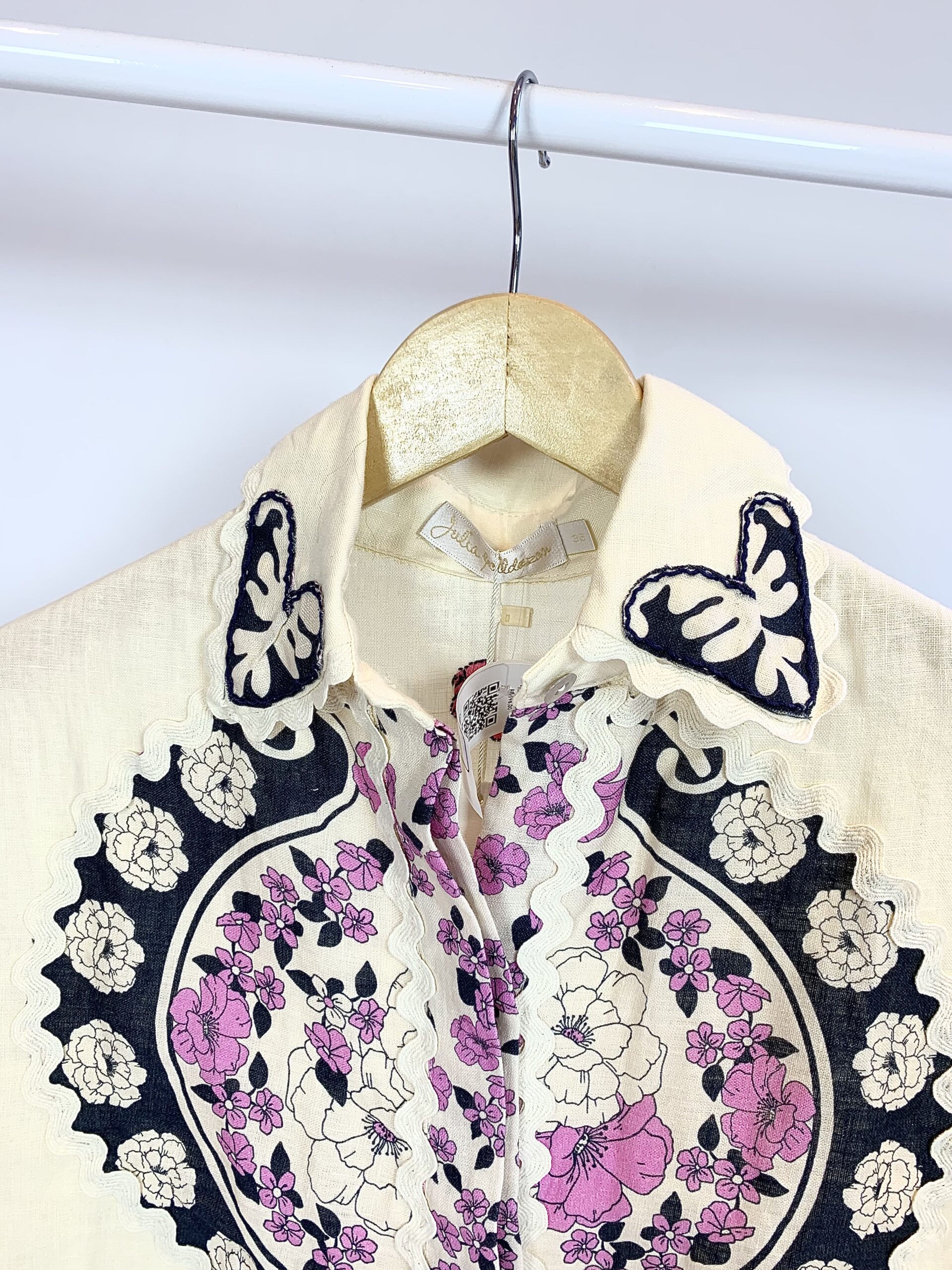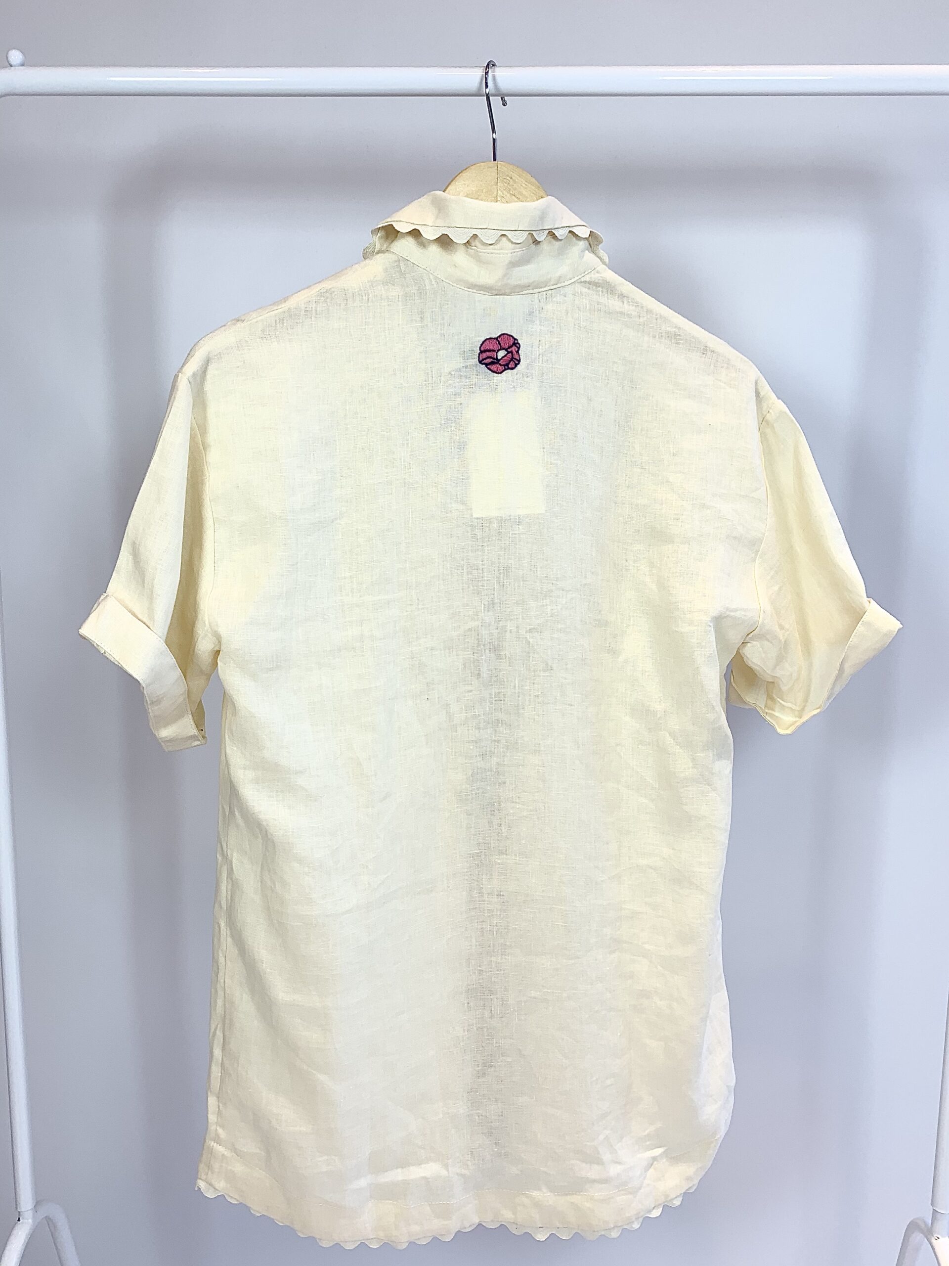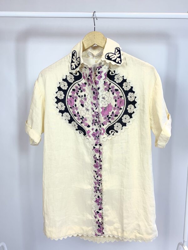 Camisa linho bordado rosa e preto JULIA GOLLDENZON – 36 *nunca usada*