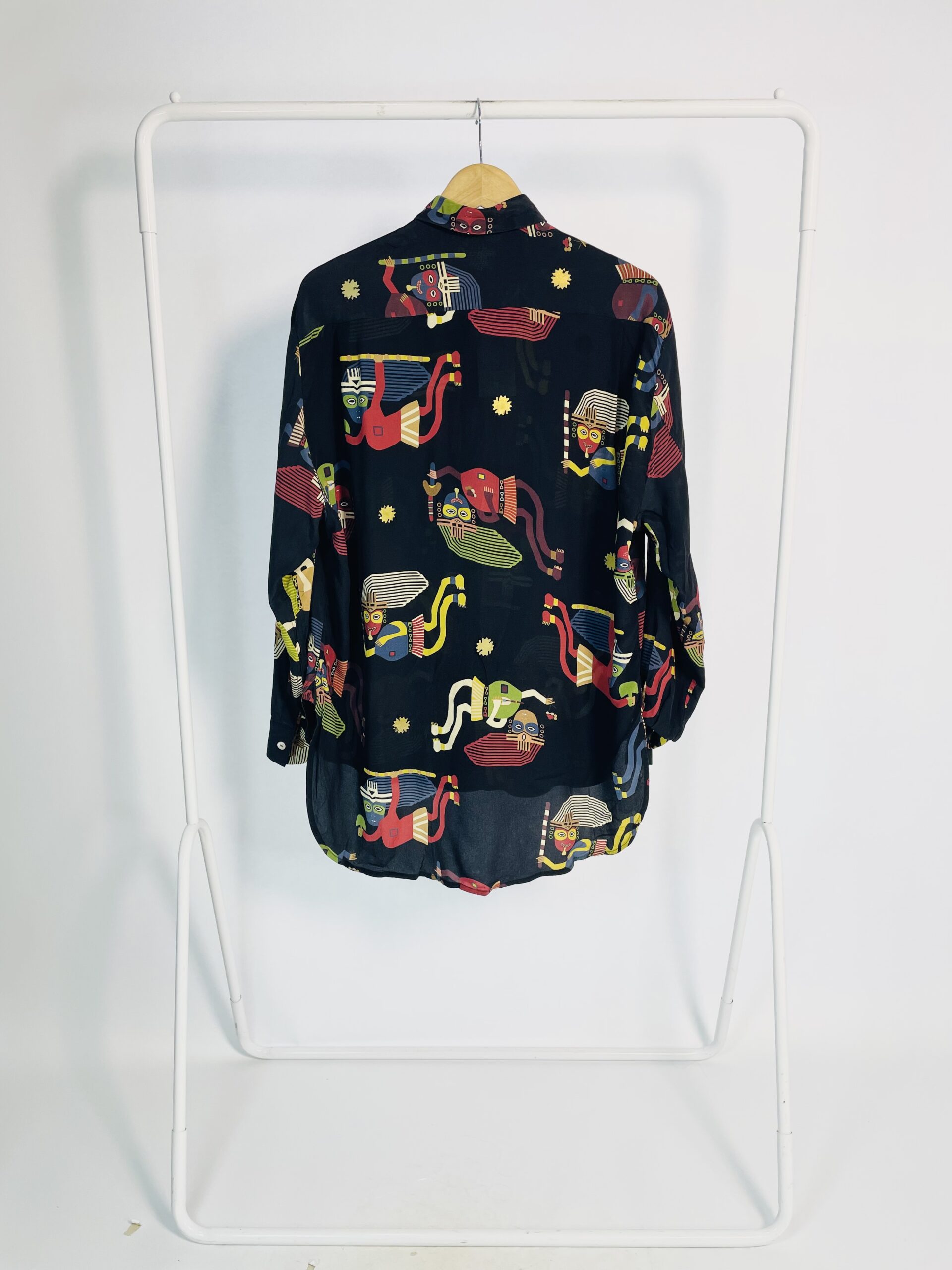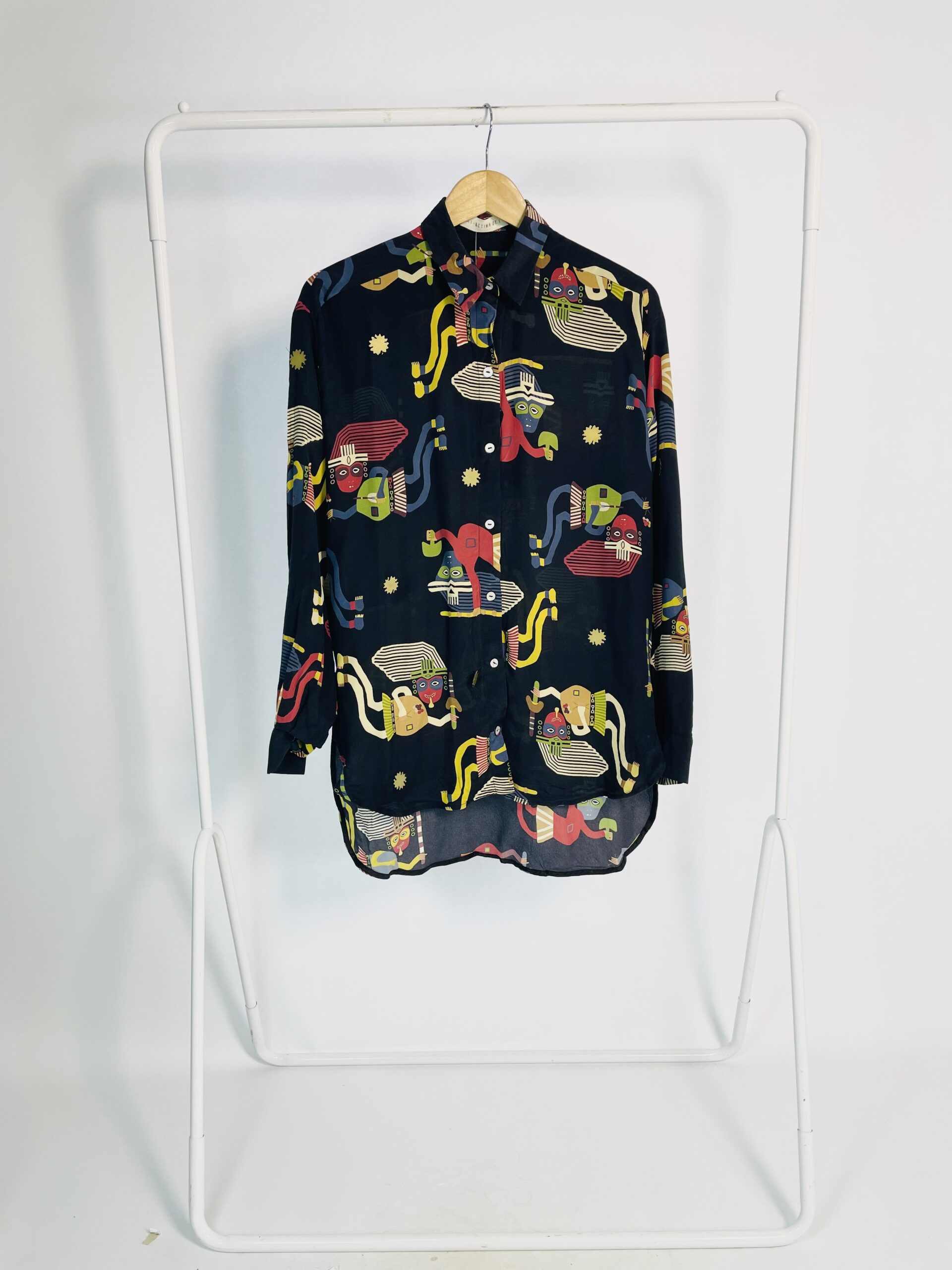 Camisa seda preta estampada e detalhes metalizados WAIWAI + BETINA DE LUCA – P – VENDIDO SISTEMA OTO