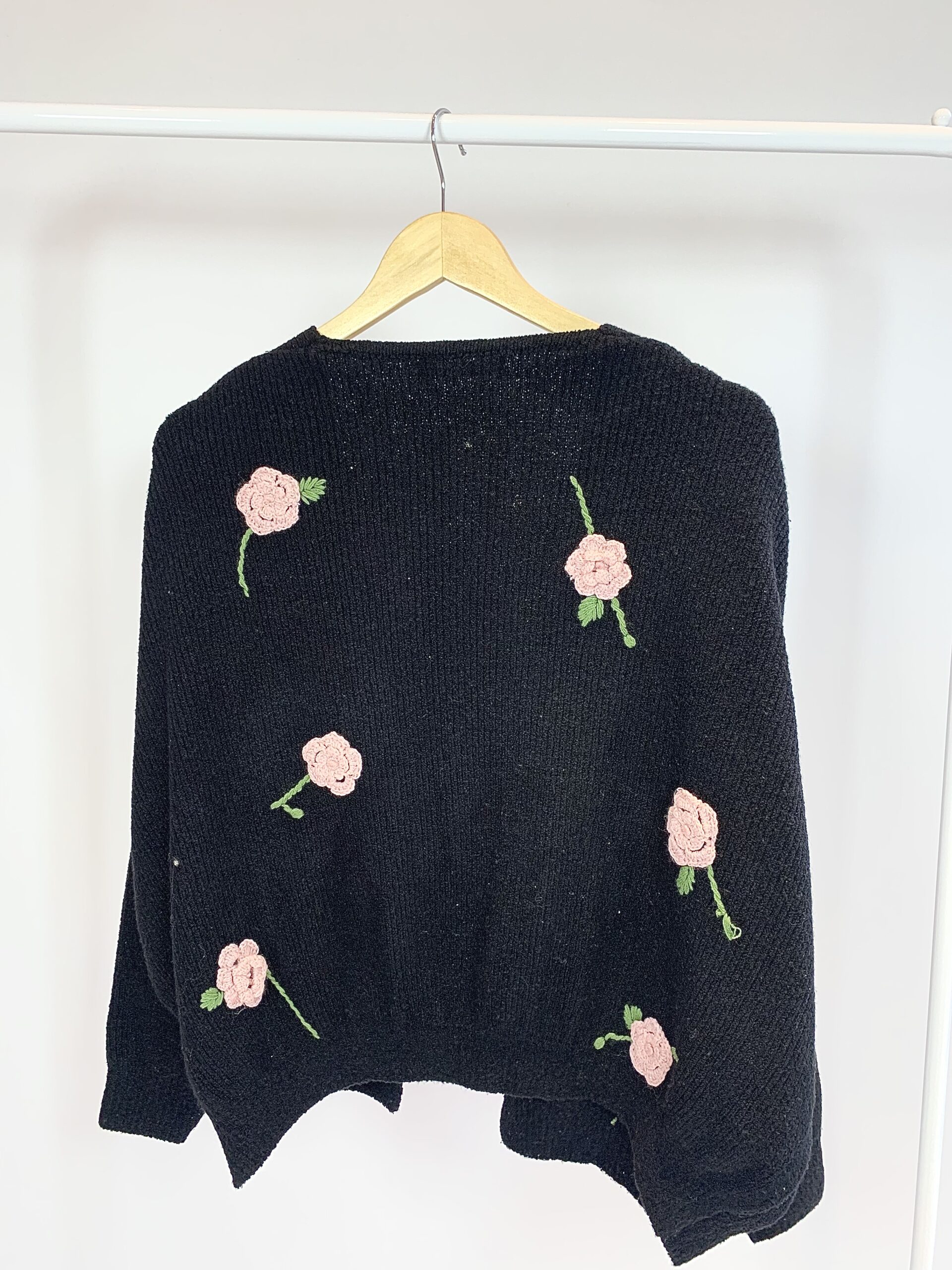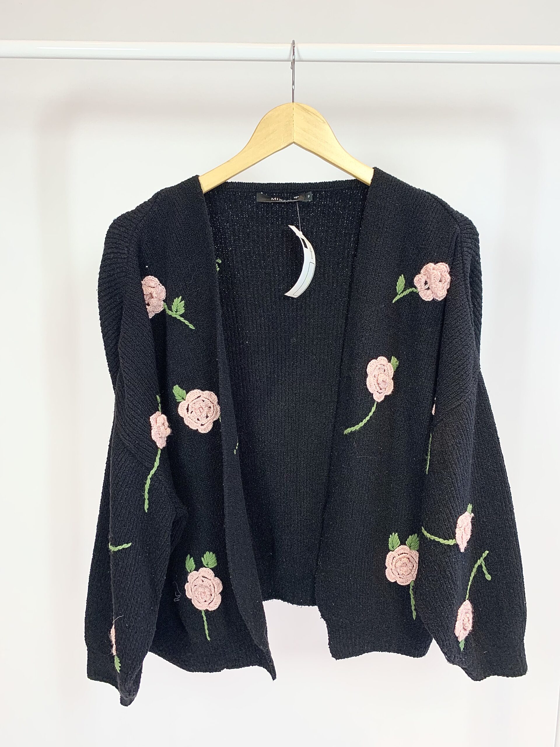 Cardigan preto flores rosas em bordado MIXED – P