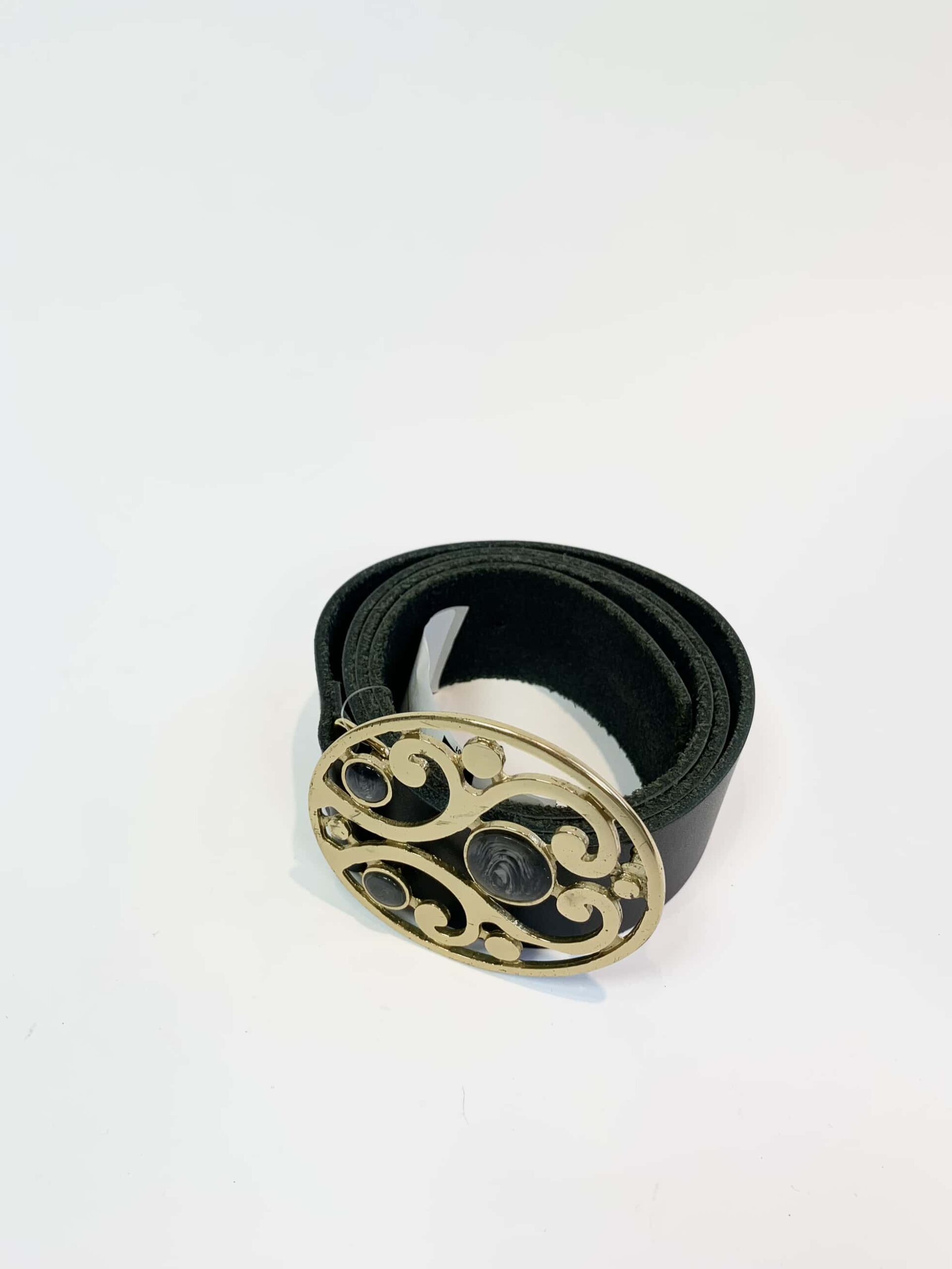 Cinto preto fivela dourada e verde - VENDIDO SIST OTO