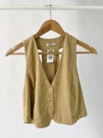 Blazer linho risca de giz ocre PEAHI - M - VENDIDO SISTEMA OTO