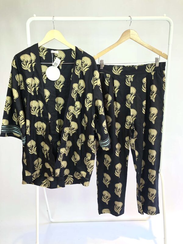 Conjunto viscolinho preto com bolinhas calça e blusa CLARA FONTENELLE - G - VENDIDO SISTEMA OTO