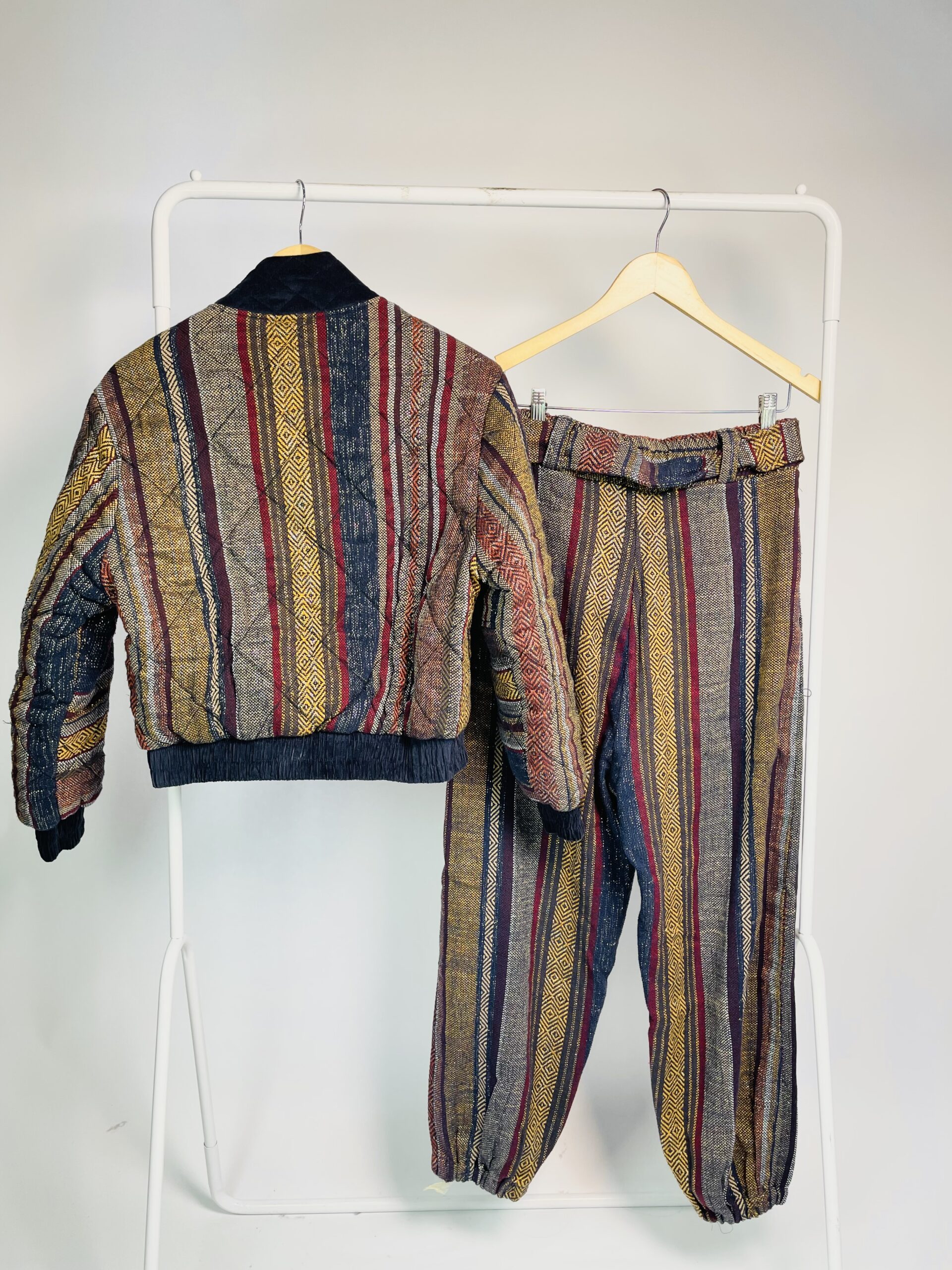 Conjunto calça e bomber azul marinho com estampa e fios de lurex com faixa SAVY + NK- P VENDIDO SISTEMA OTO