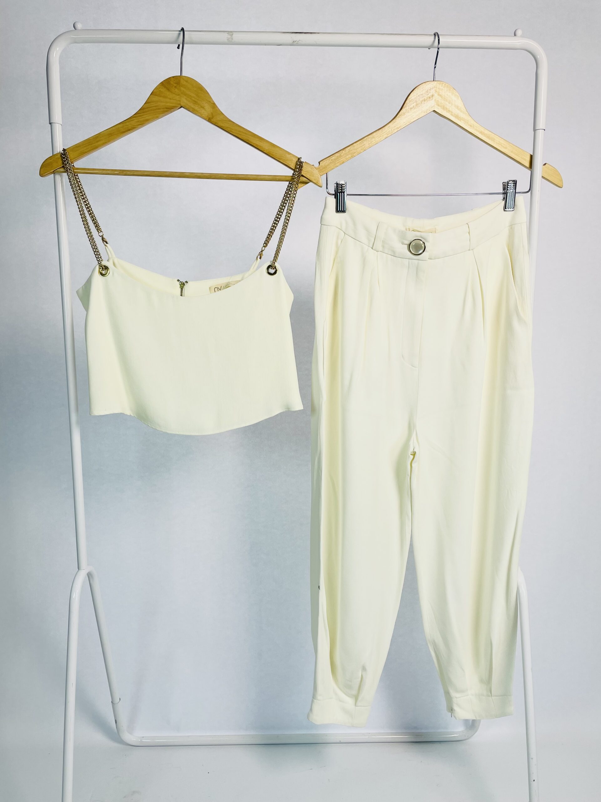 Conjunto blusa e saia midi branco com bordados dourados e vermelhos ATEEN - 38