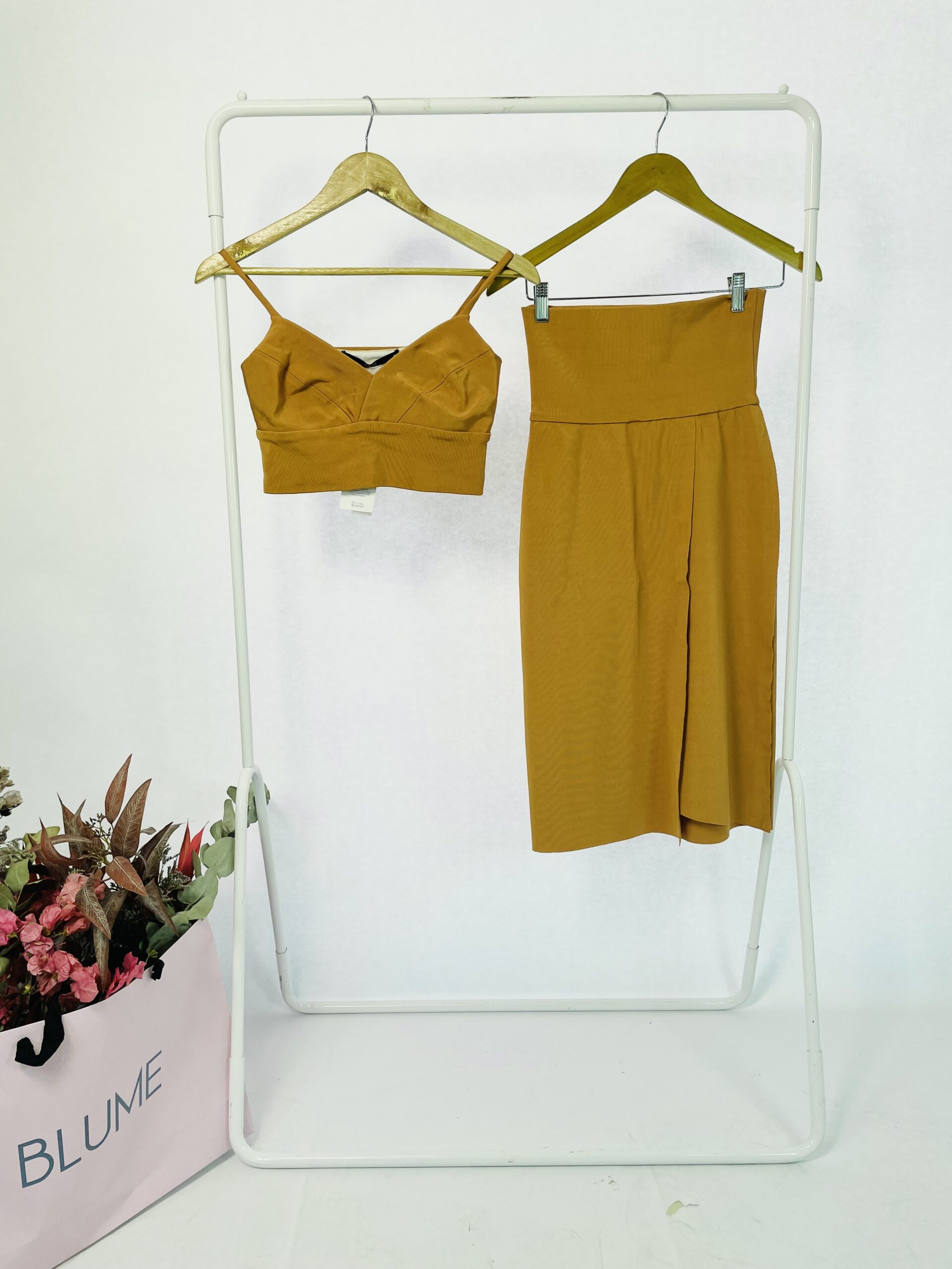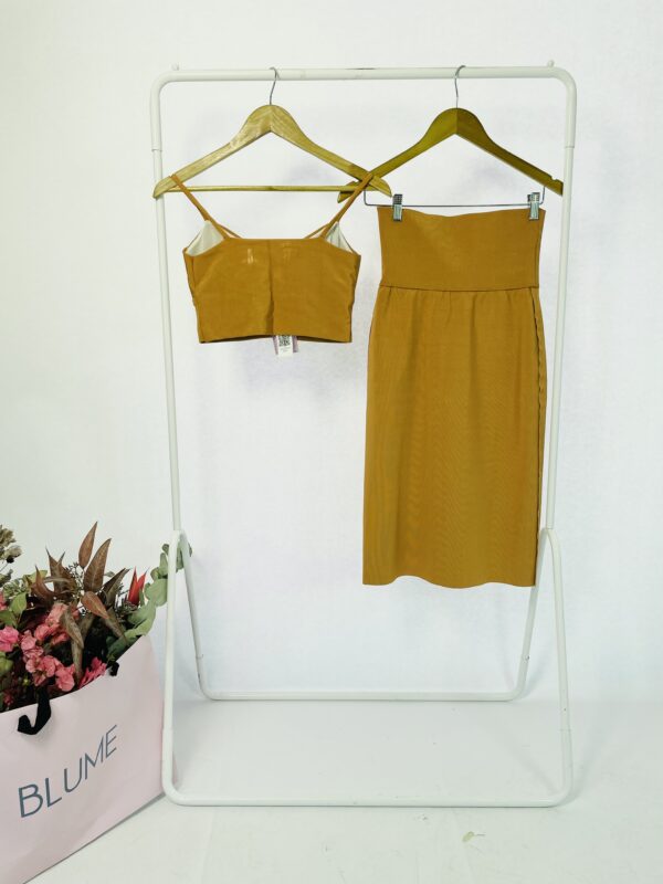 Conjunto cropped e saia midi de tricot terracota EVA – P