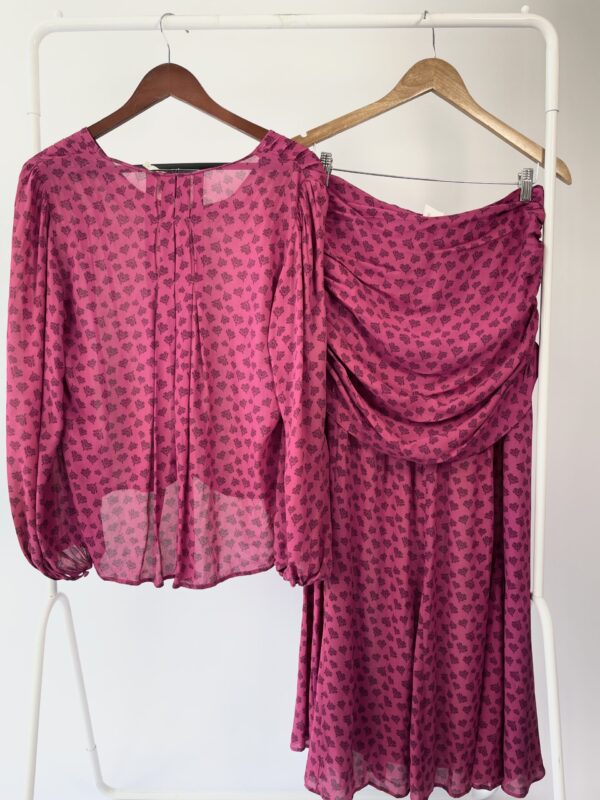 Saia midi linho rosa bordada CRIS BARROS - 38 - VENDIDO SISTEMA OTO