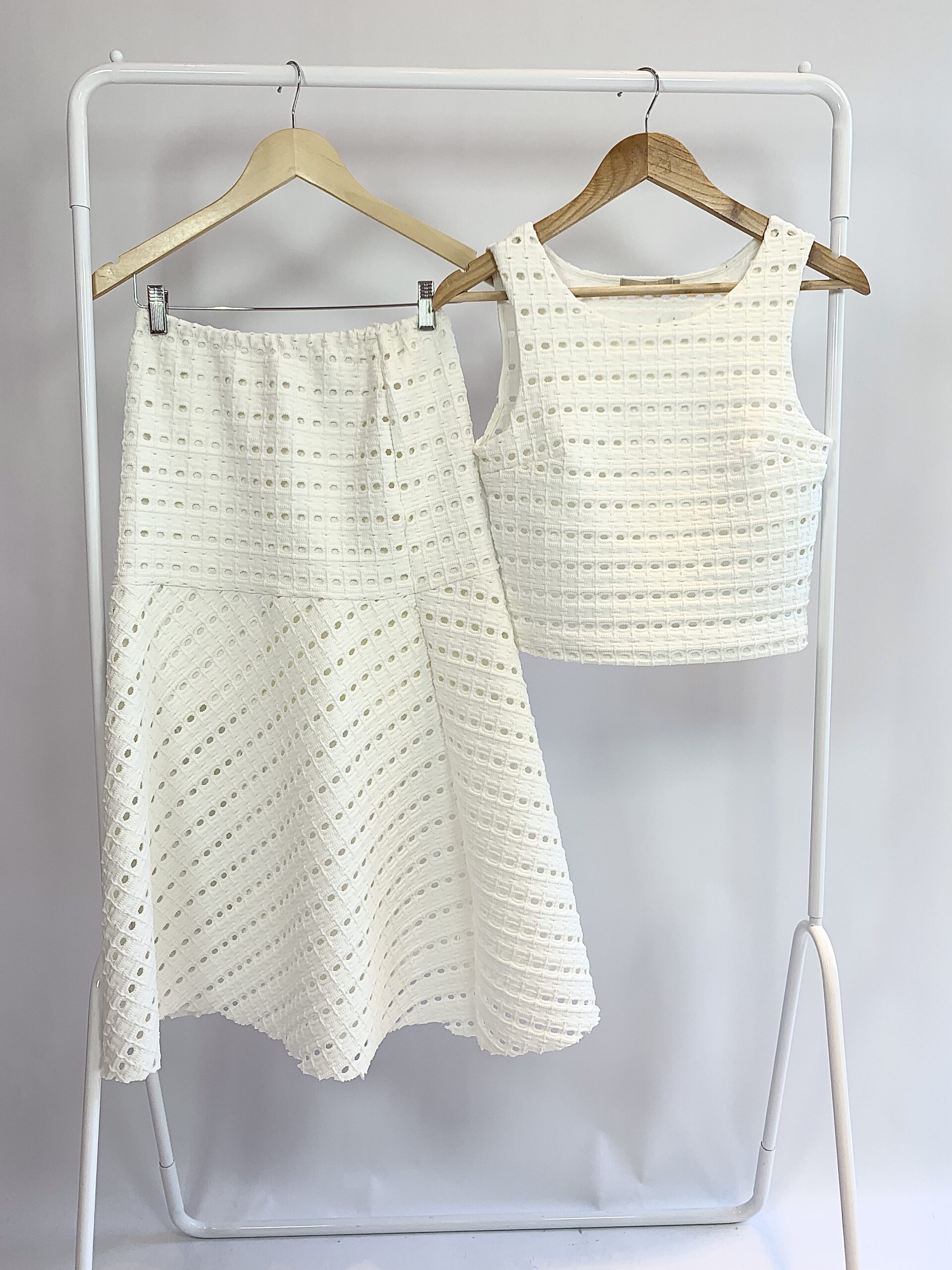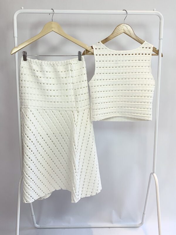 Conjunto saia e cropped trama de tricot branco MOB – P – VENDIDO SISTEMA OTO