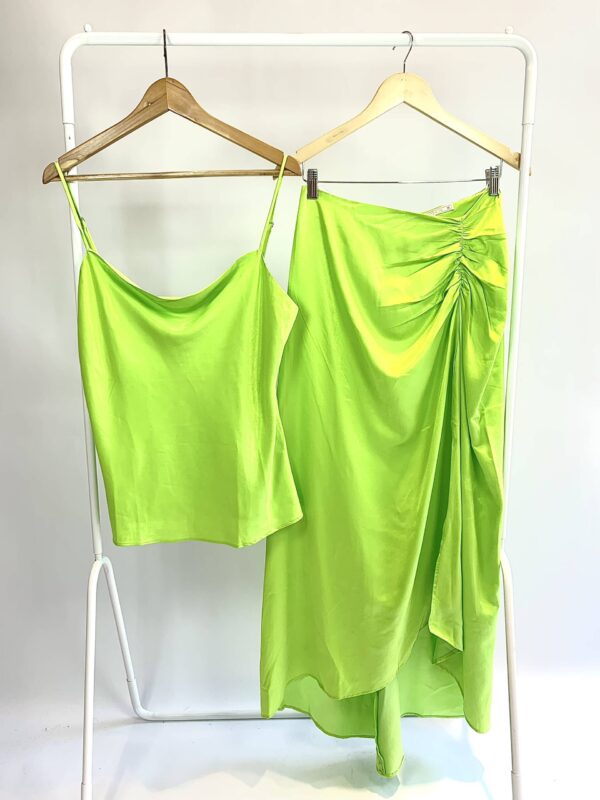 Conjunto saia midi e blusa degagê acetinada verde limão ELLIS *nunca usado* – M