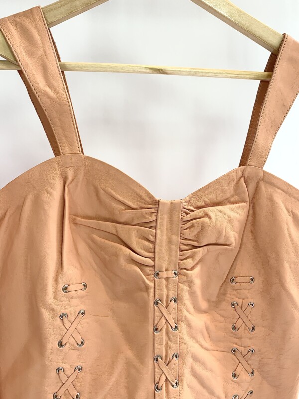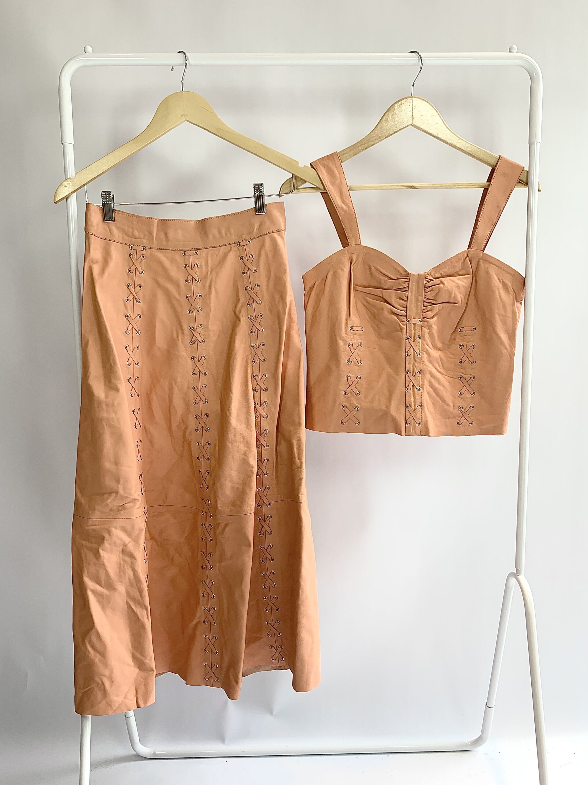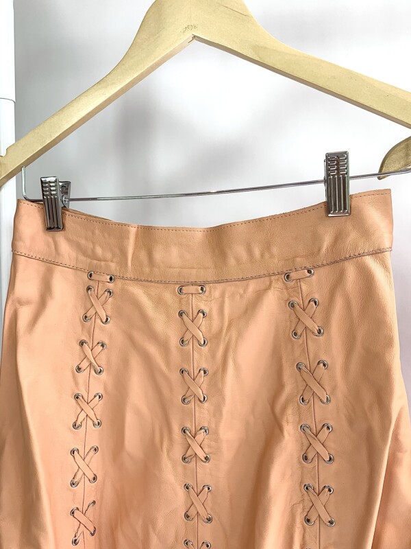 Conjunto salmão saia e cropped couro detalhes amarração AMITZ – P – VENDIDO SISTEMA OTO