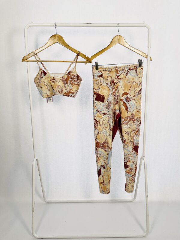 Conjunto top e calça legging estampada em tons de bege bordô e azul ANIMALE – P