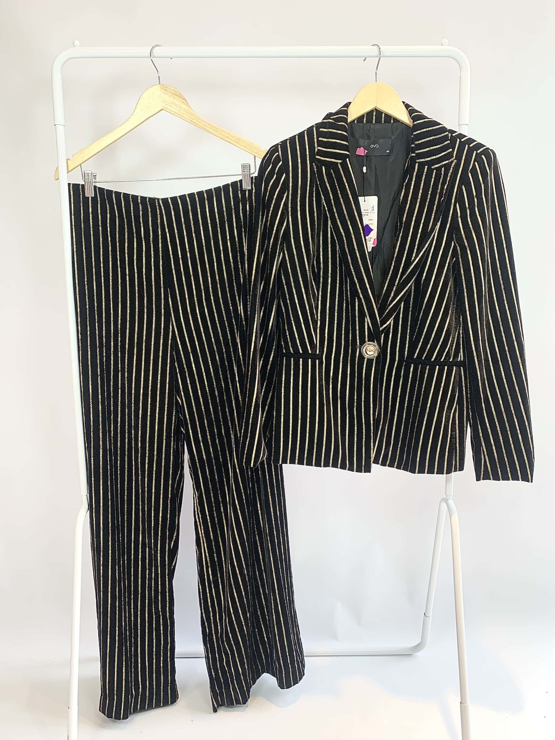 Calça alfaiataria branca listras pretas EVA - 42