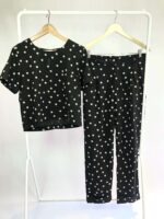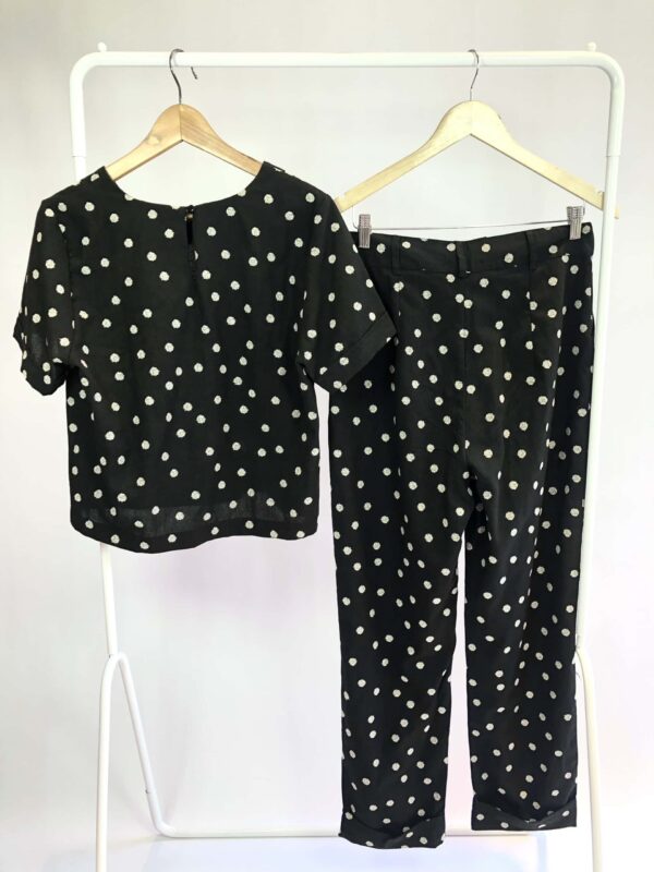 Conjunto viscolinho preto com bolinhas calça e blusa CLARA FONTENELLE – G – VENDIDO SISTEMA OTO