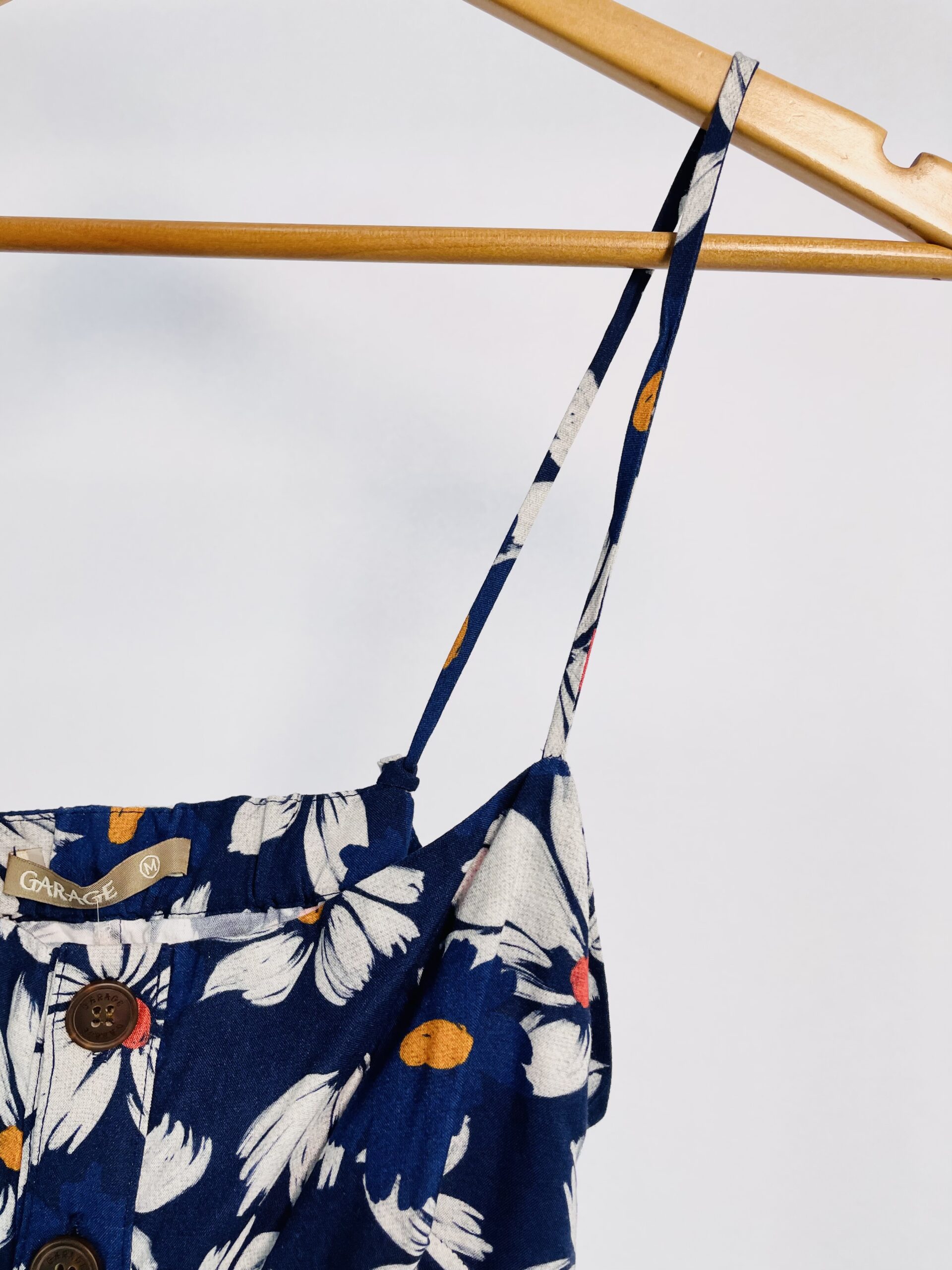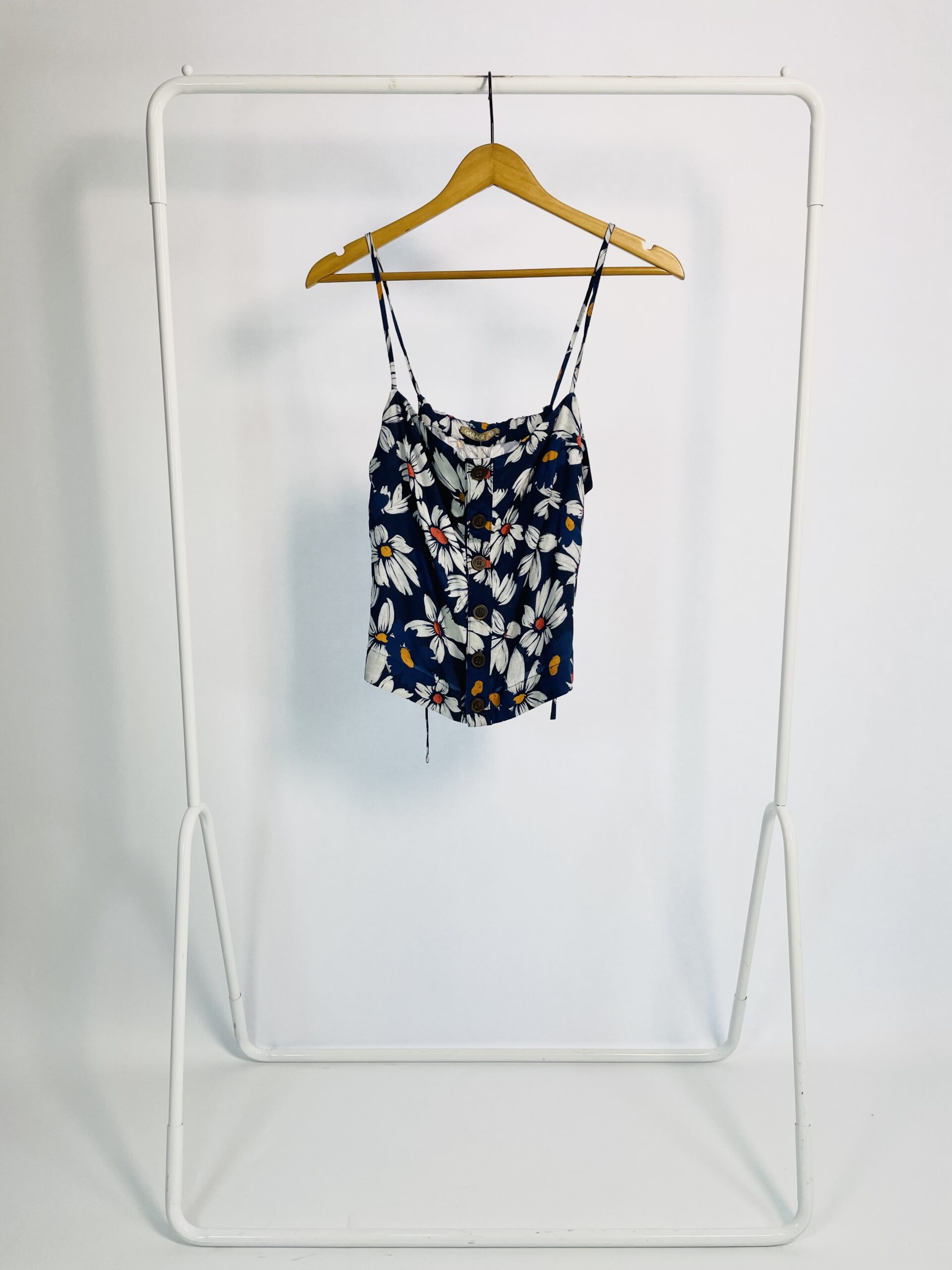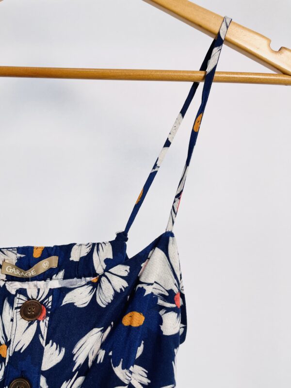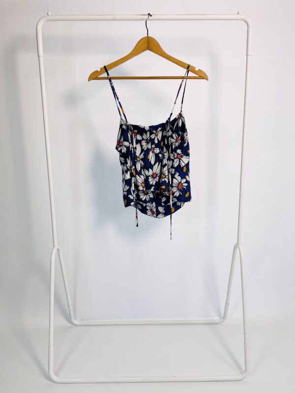 Cropped alça fina azul marinho estampa floral branca GARAGE – M