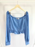 Cropped azul manga longa babado na barra AHKA - G (nunca usado) *VENDIDO SISTEMA OTO*