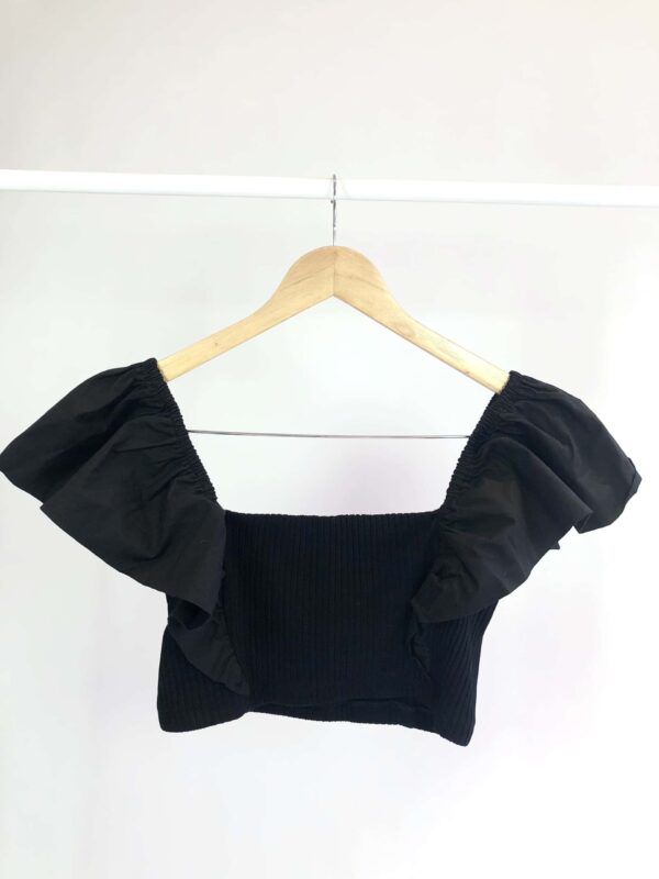 Cropped preto canelado com detalhe na manga FARM – M – VENDIDO SISTEMA OTO