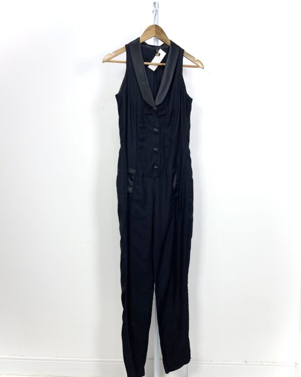 Macacão preto detalhe cetim MARIA FILÓ - P - VENDIDO SISTEMA OTO