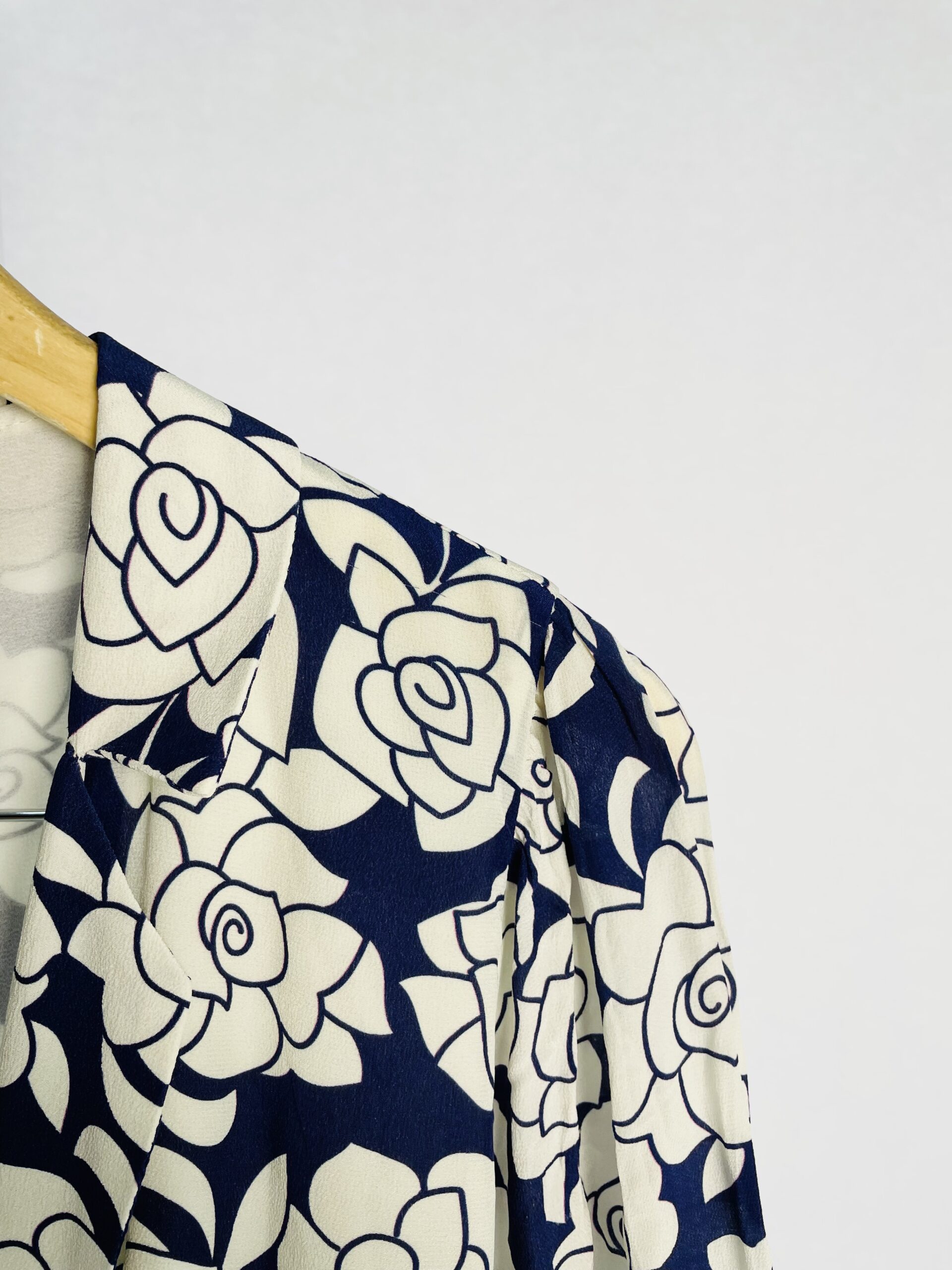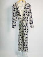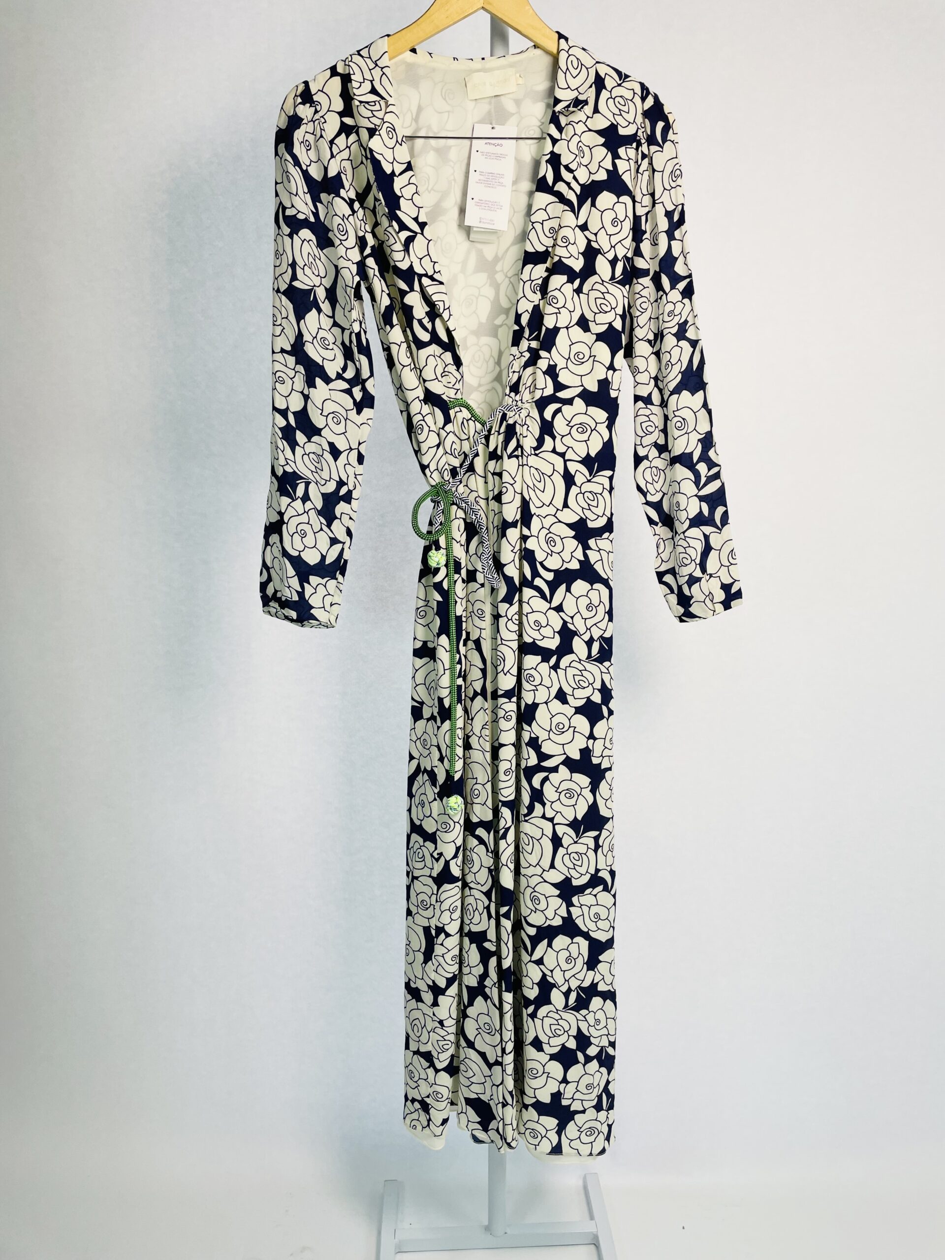 Kimono seda off white com estampa azul marinho e faixa CRIS BARROS – 36 – VENDIDO SISTEMA OTO