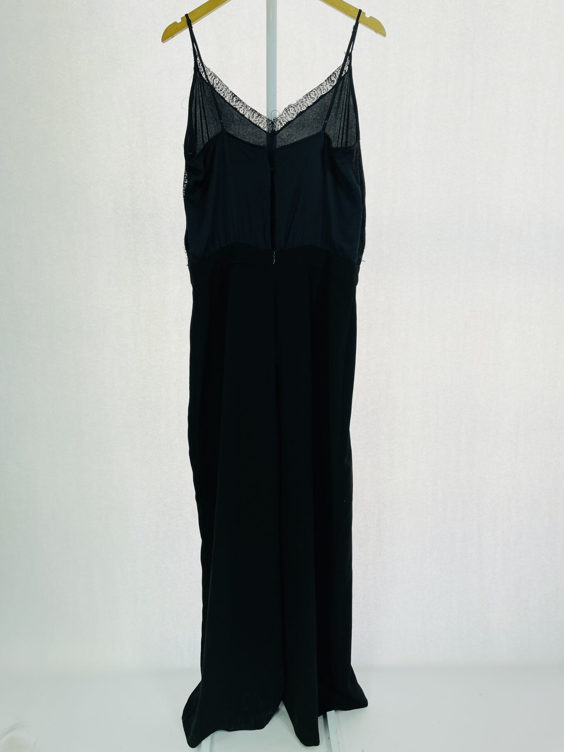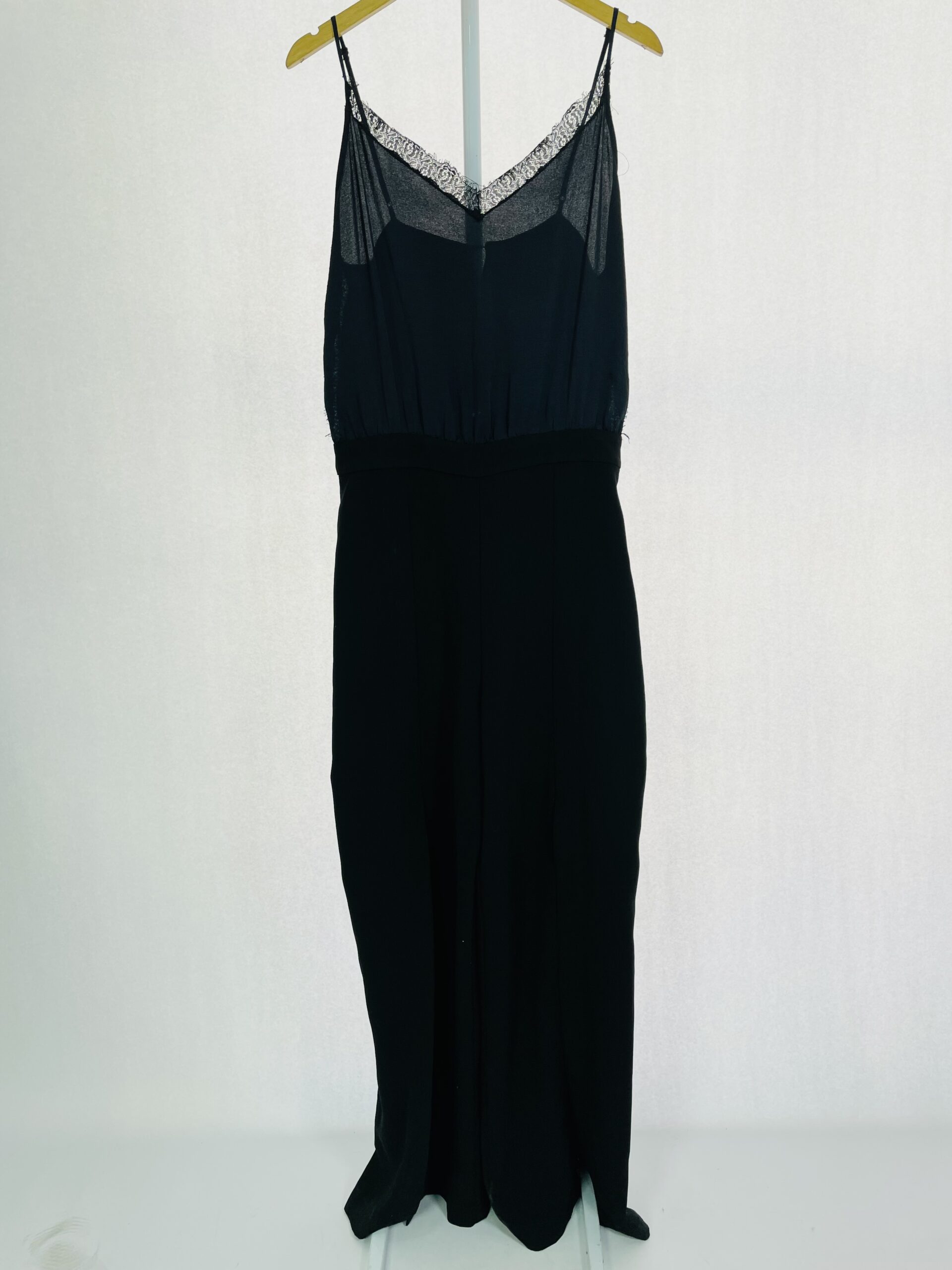 Regata acetinada preta com alças finas e renda no decote LE LIS BLANC - M