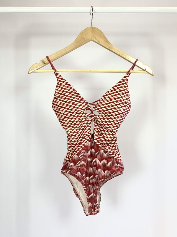 Maiô costas cruzadas estampa telha e off – P