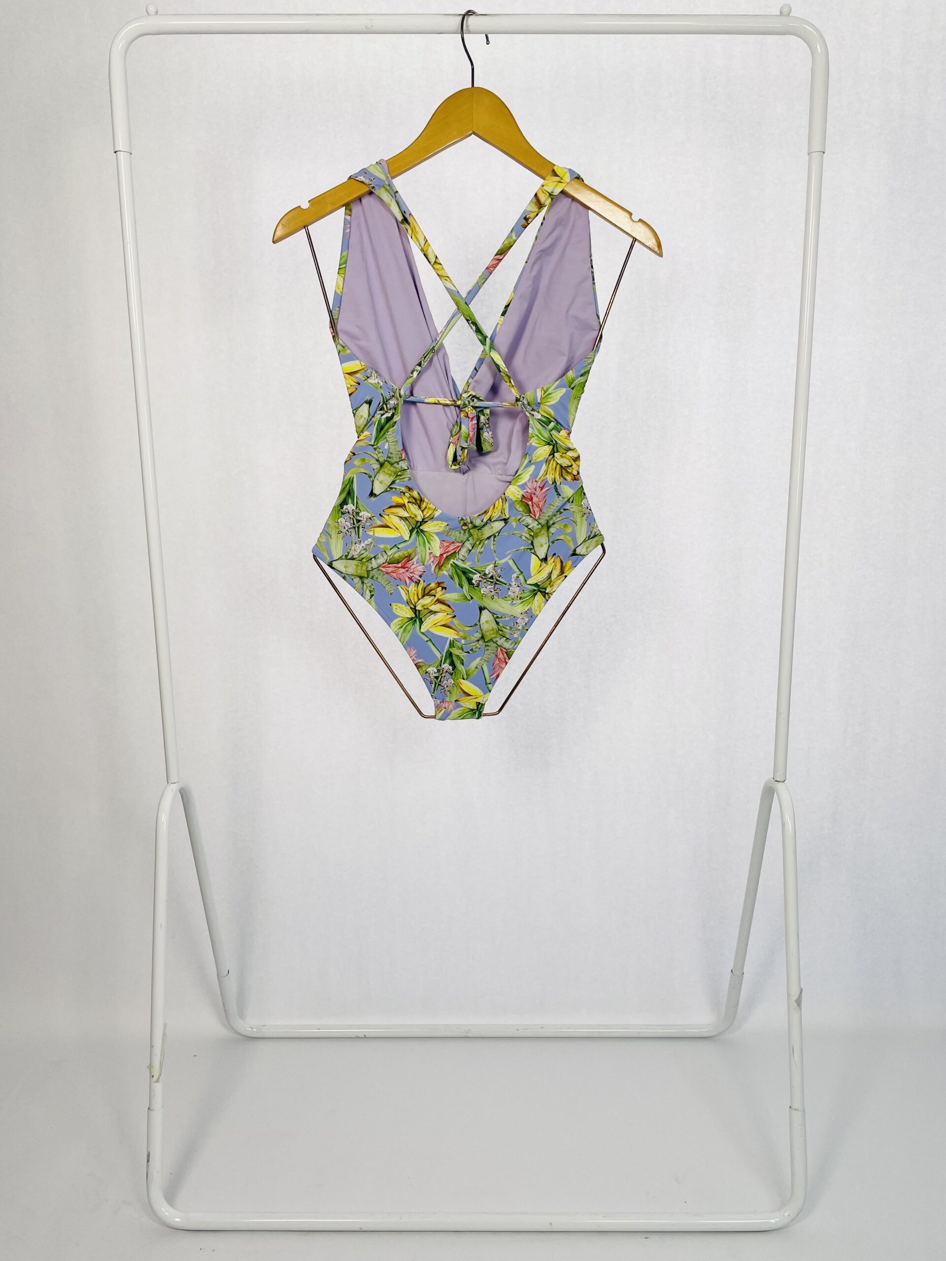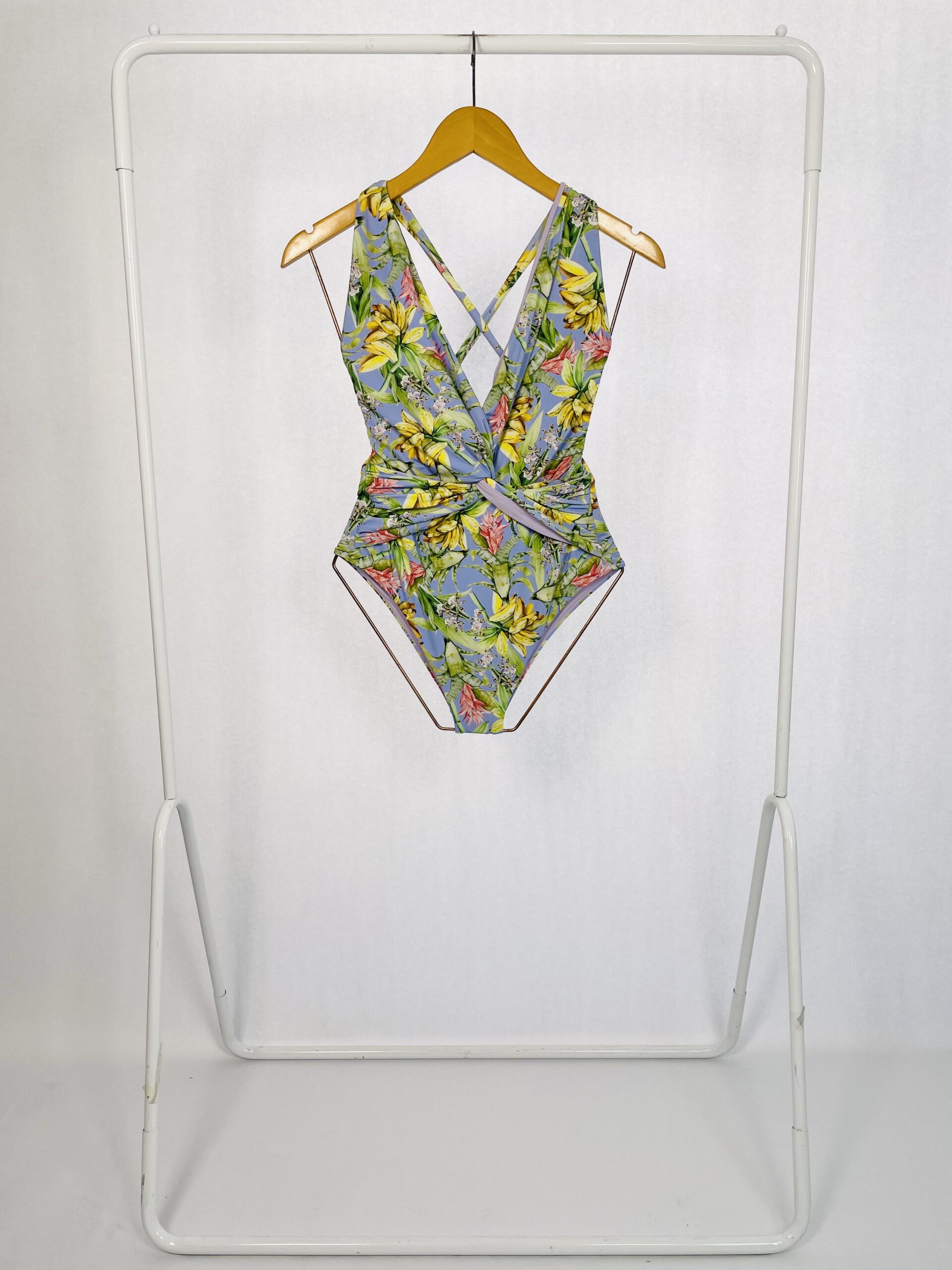 Maio Fundo Azul Claro Flores e Banana EMI Beachwear – G (Nunca usado) – VENDIDO SISTEMA OTO