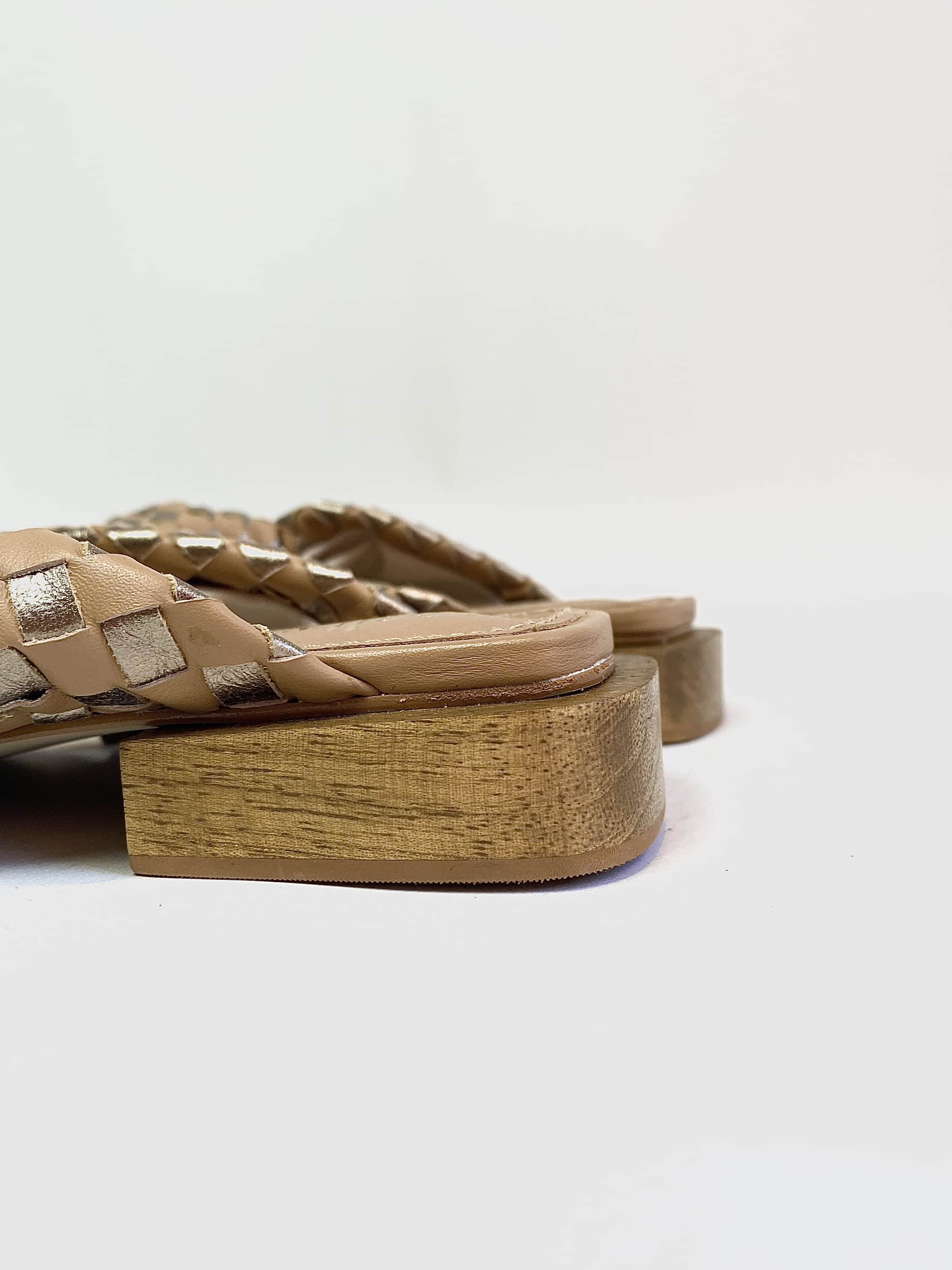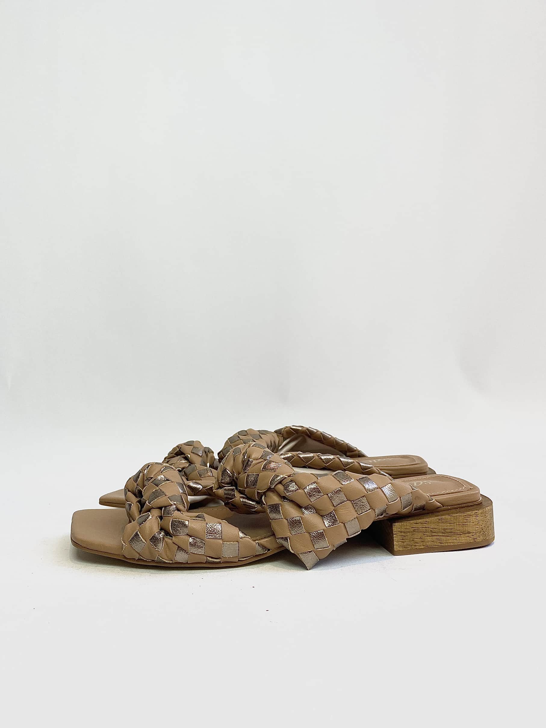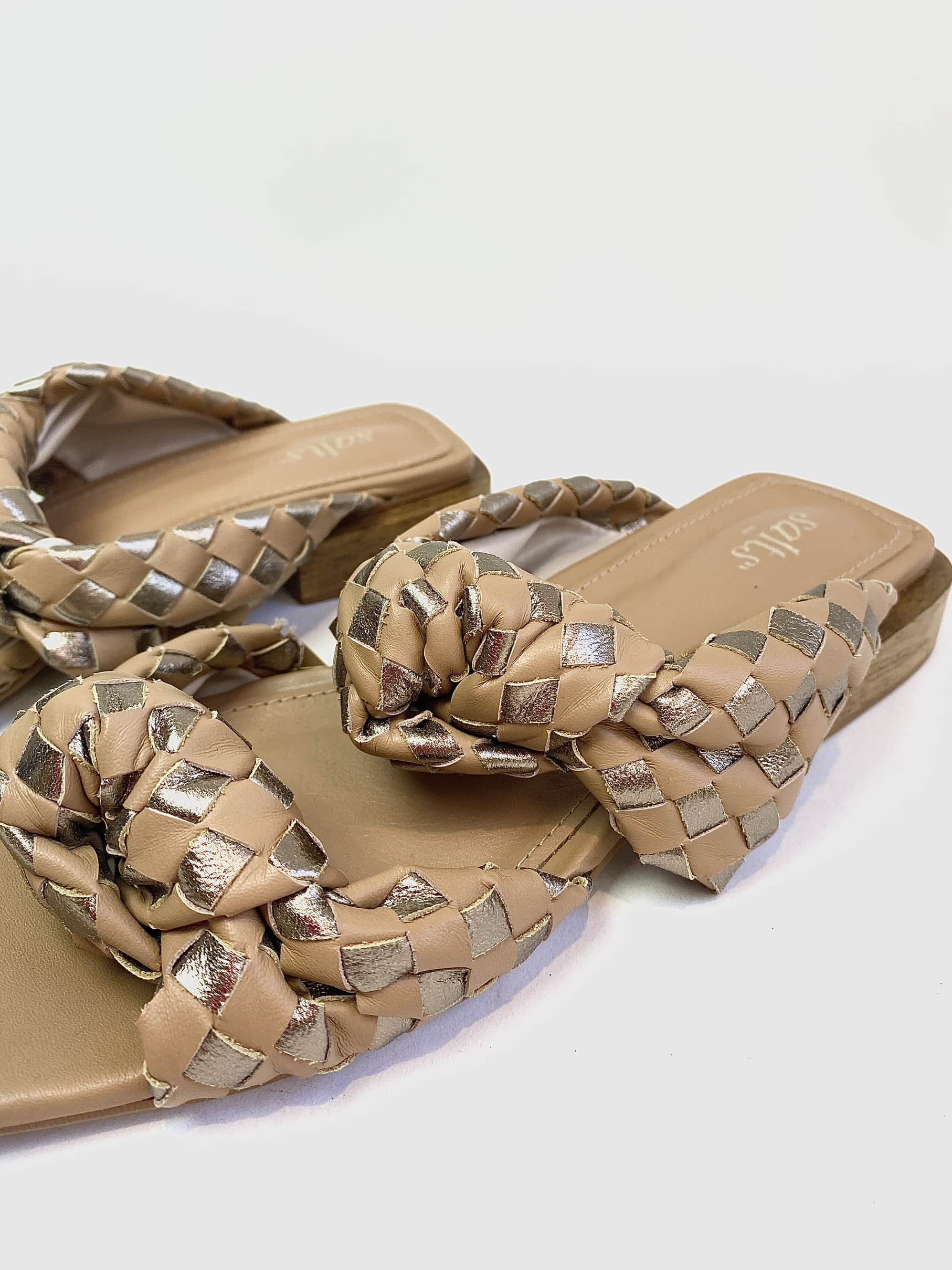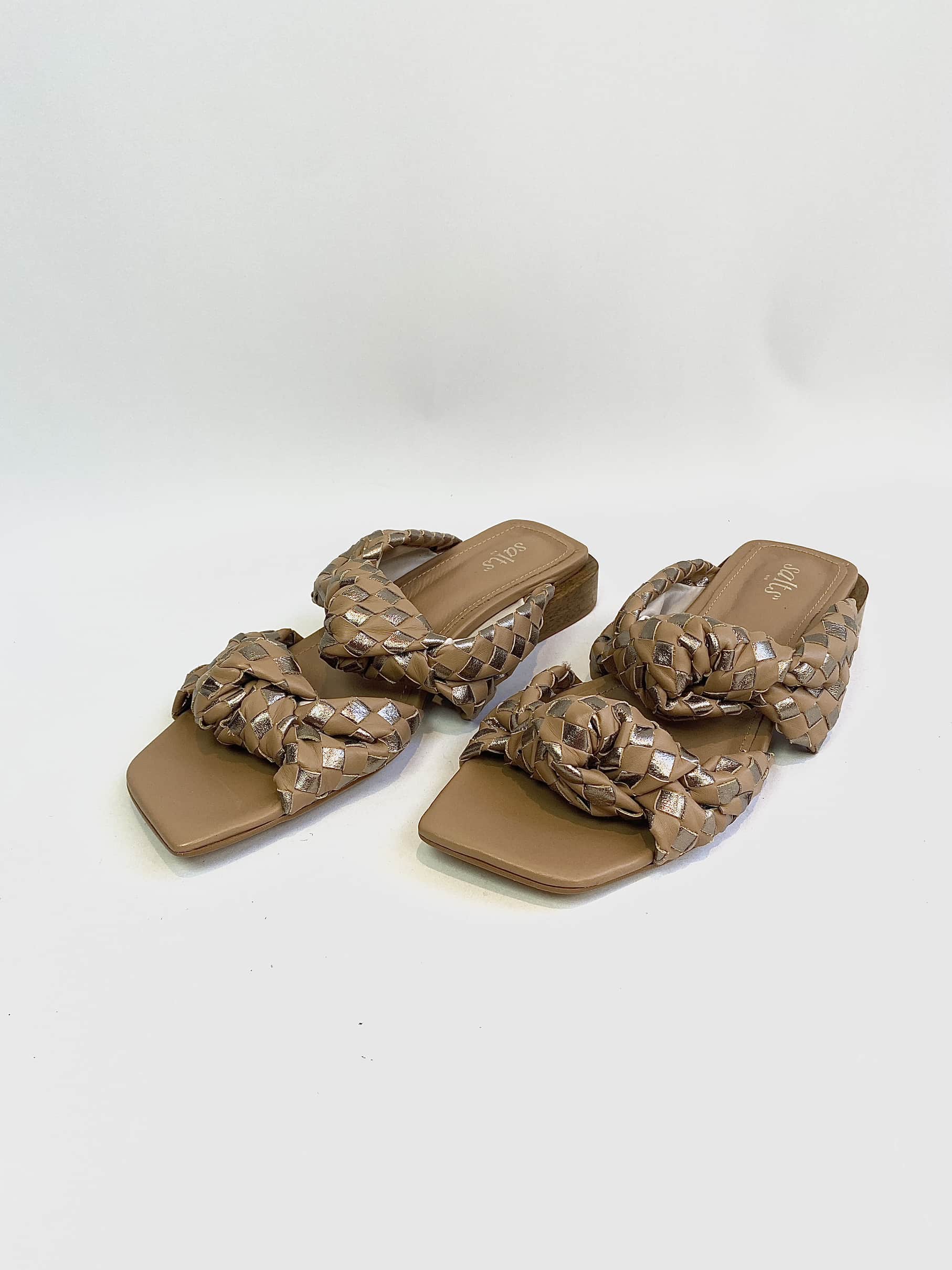 Rasteira nó tressê caramelo e metalizado SALTS – 36
