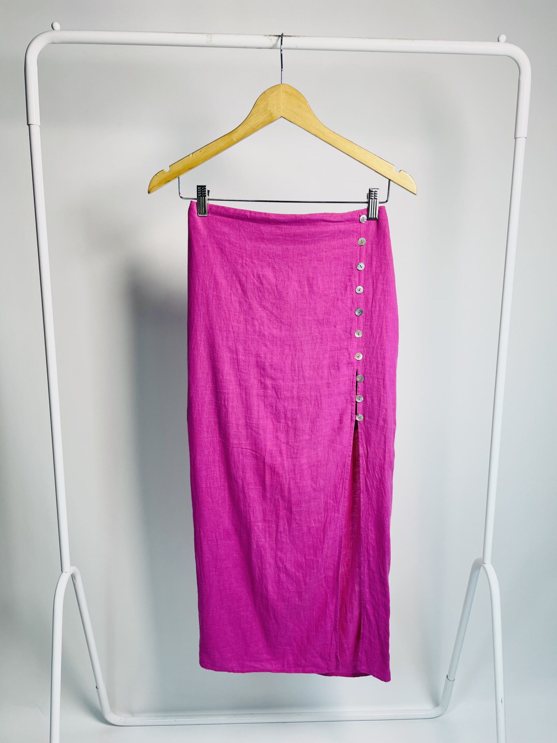 Saia fucsia linho com boões VIX – P – VENDIDO SISTEMA OTO