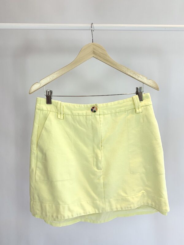 Saia jeans amarela com botão pedraria NV – 42 – VENDIDO SISTEMA OTO