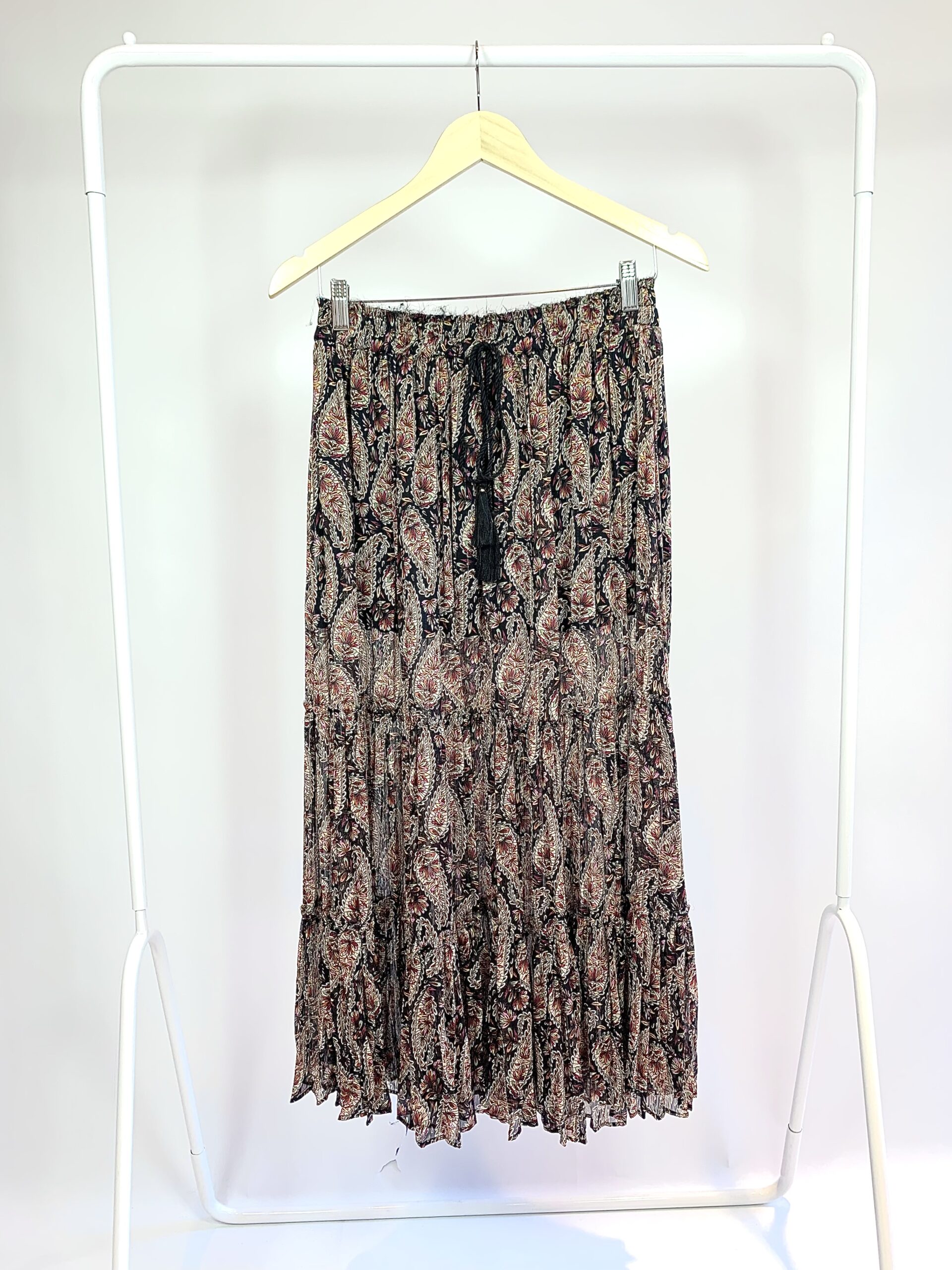 Saia longa preta lastex cintura bordados ZARA - P