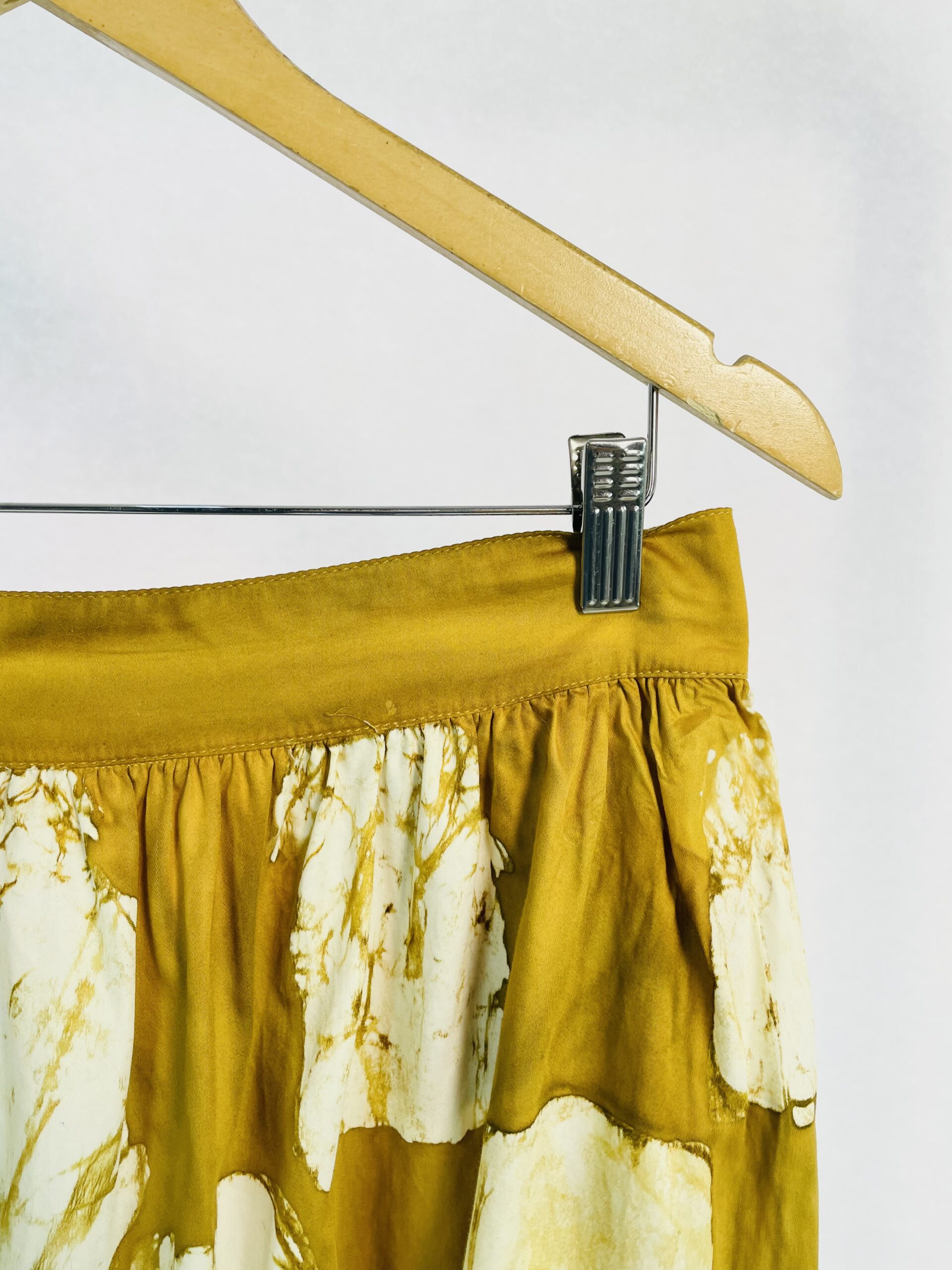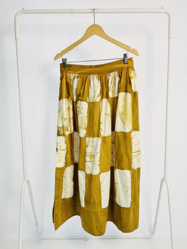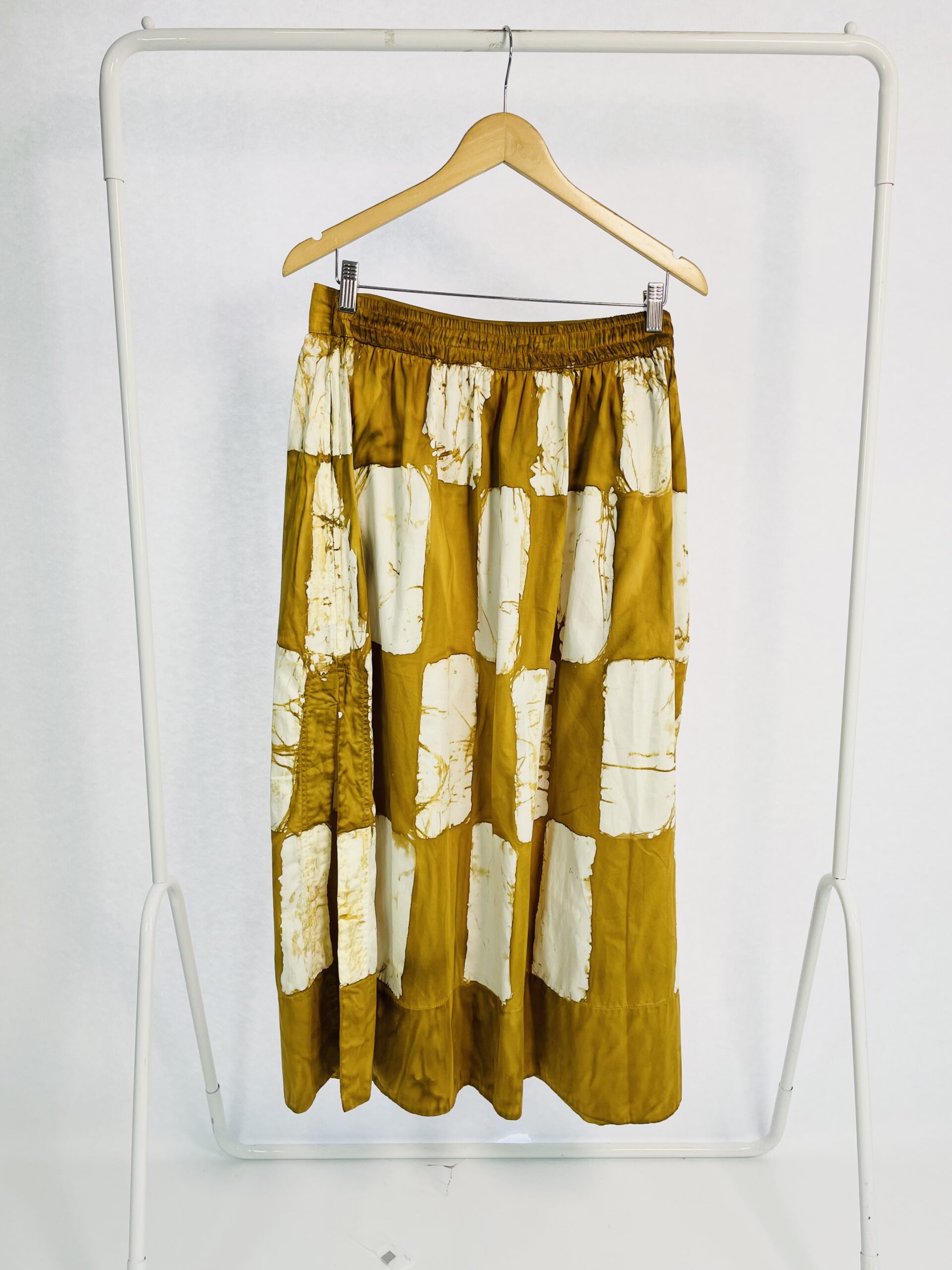Calça acetinada estampada tons de amarelo e marrom ADRI RODRIGUES - M - VENDIDO SIST OTO