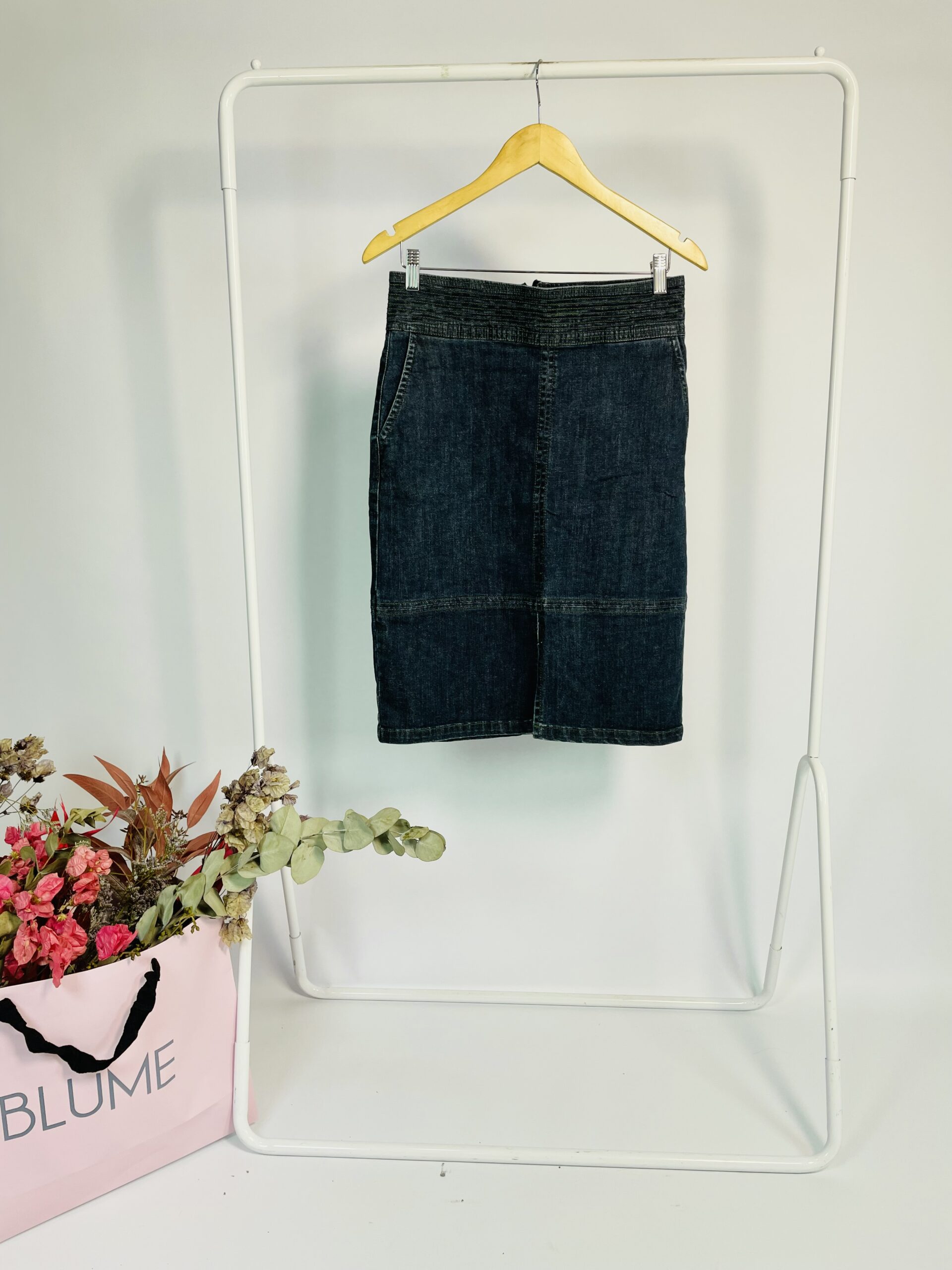 Saia midi azul marinho com estampa rosê MARIA FILÓ - P - VENDIDO SISTEMA OTO