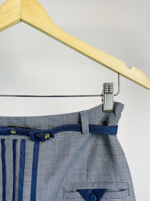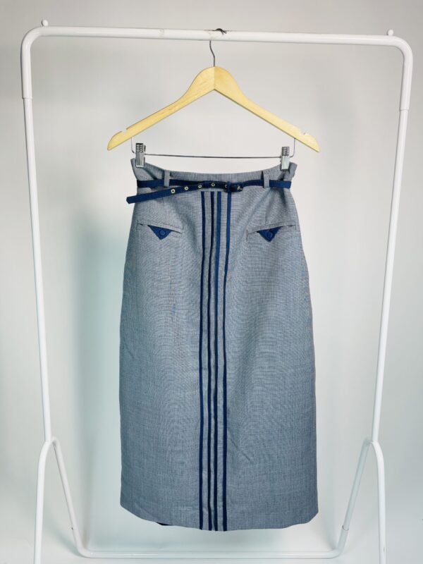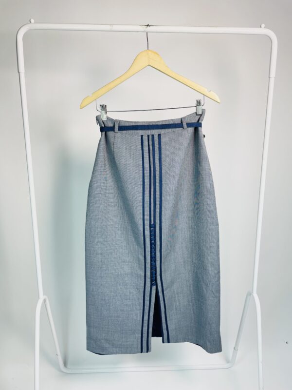 Saia midi lã cinza com detalçhes em azul marinho e cinto fino LINNEN – 38 – VENDIDO SISTEMA OTO