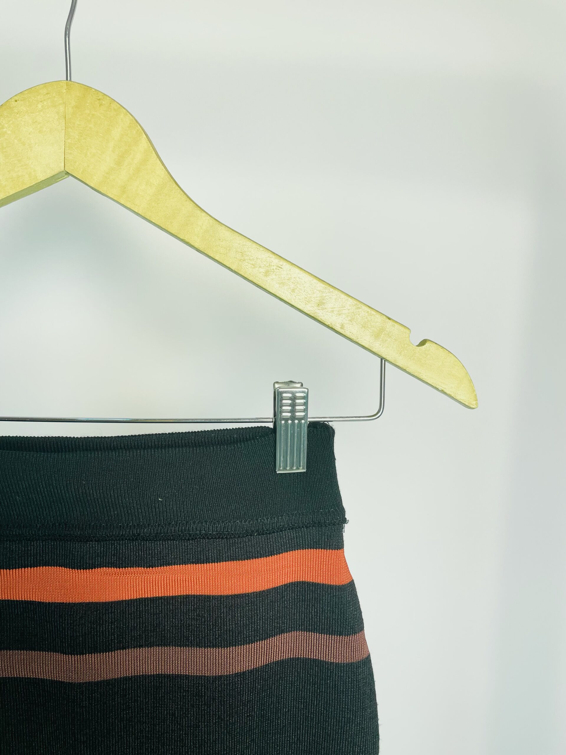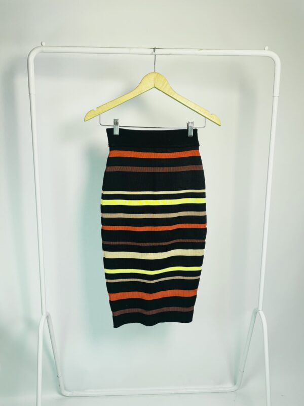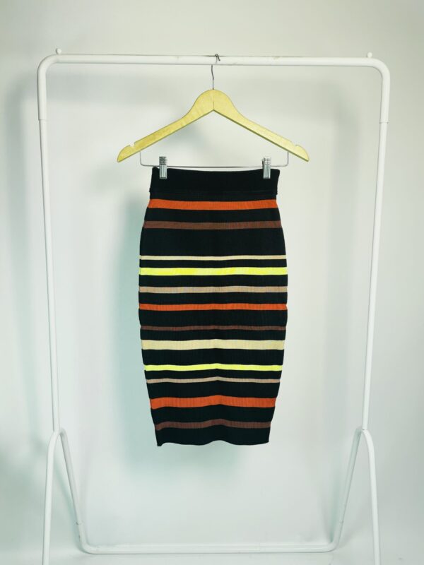 Saia midi preto com listras vermelhas amarelas e roxas ABRAND – PP – VENDIDO SISTEMA OTO