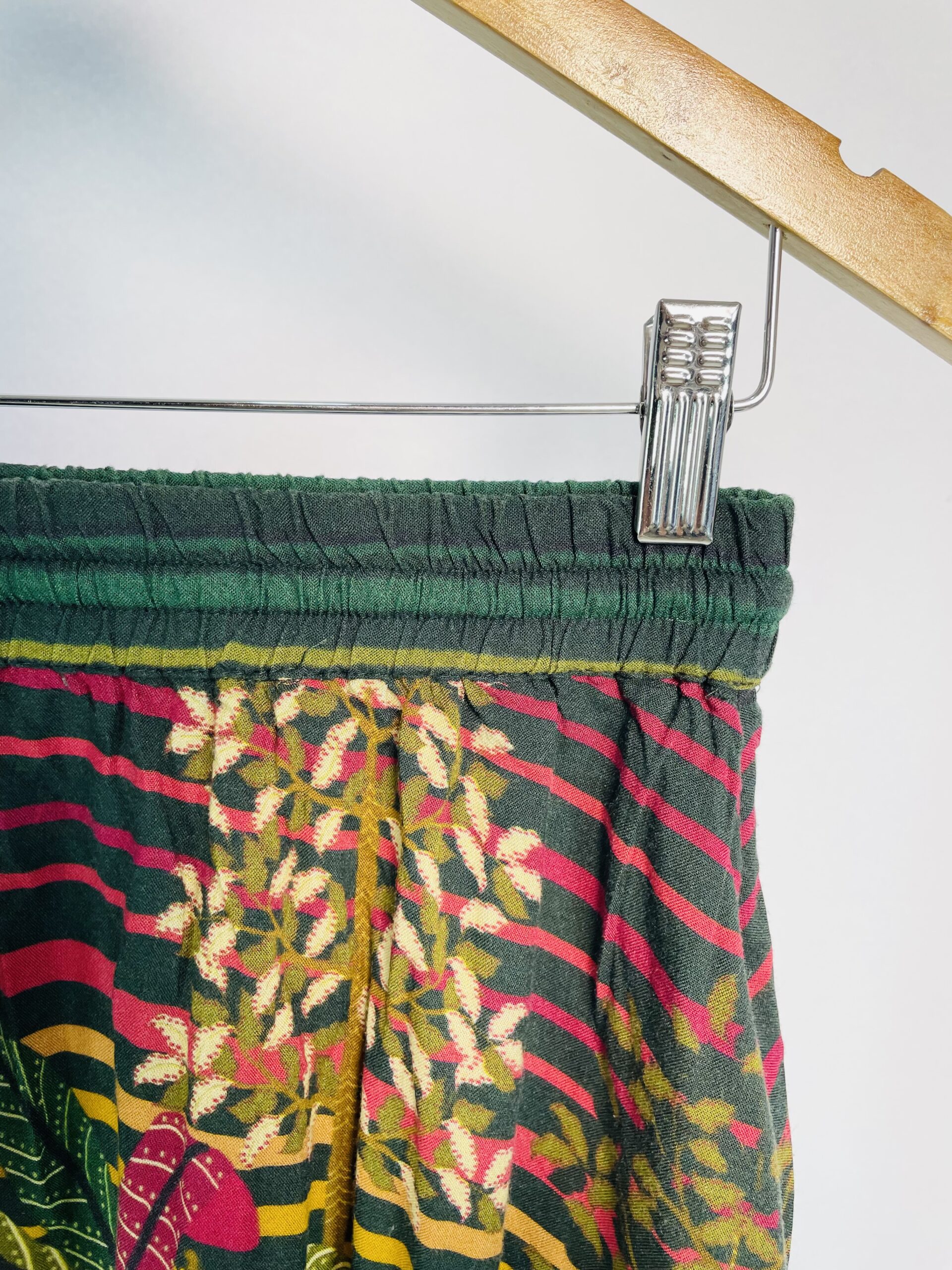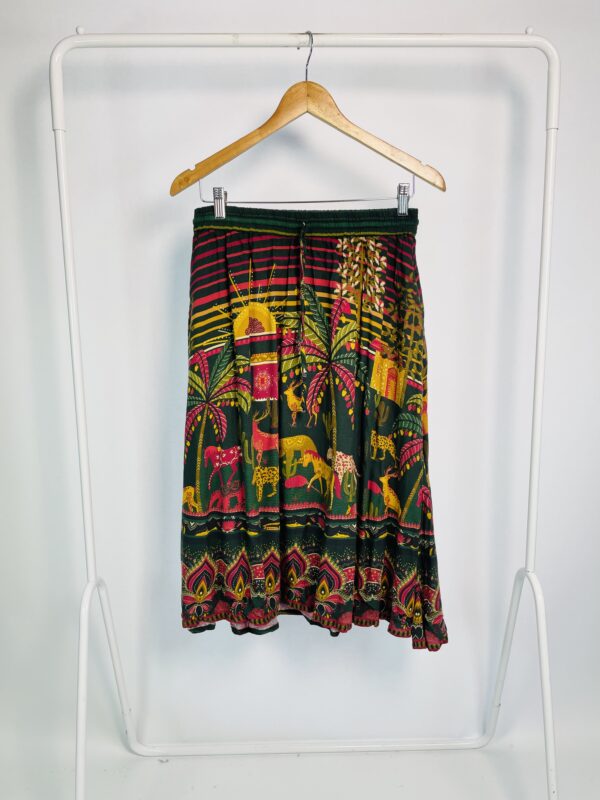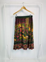 Saia midi verde estampa rosa e amarela com elástico na cintura FARM – G – VENDIDO SIST OTO
