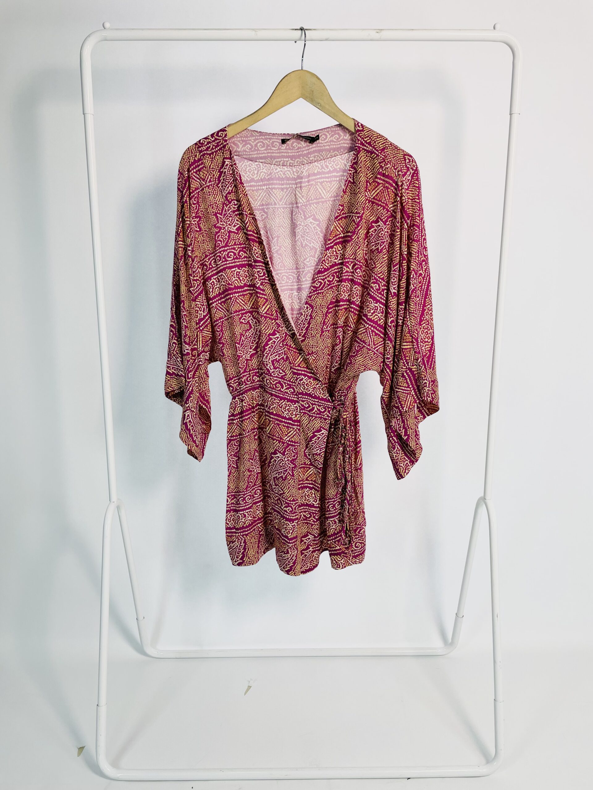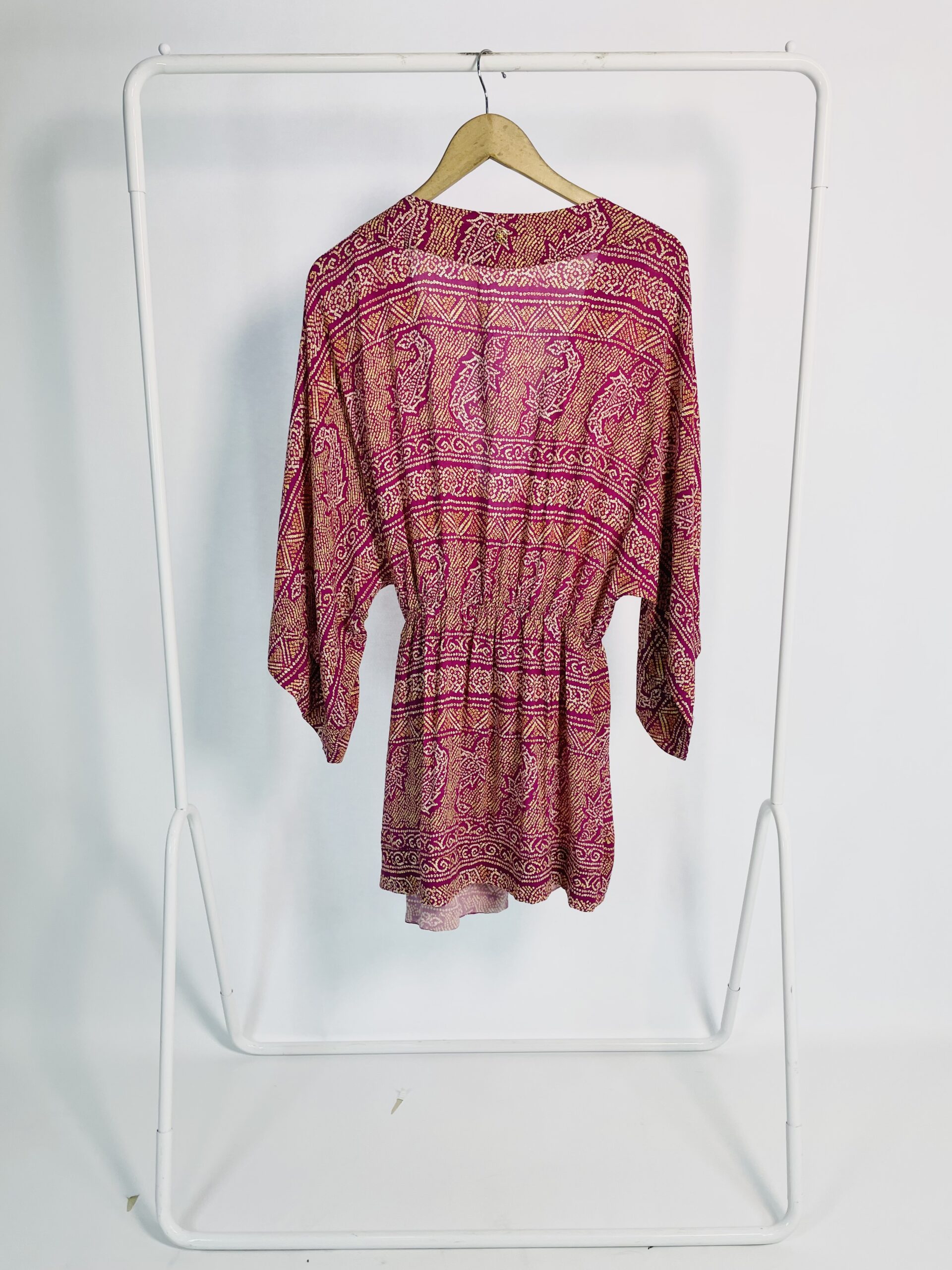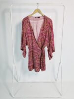 Saída de praia transpassada curta com mangas bordô estampada VIX – M – VENDIDO SISTEMA OTO