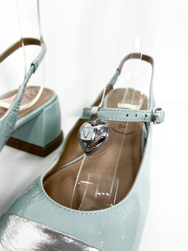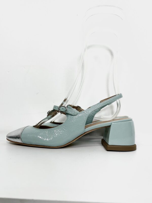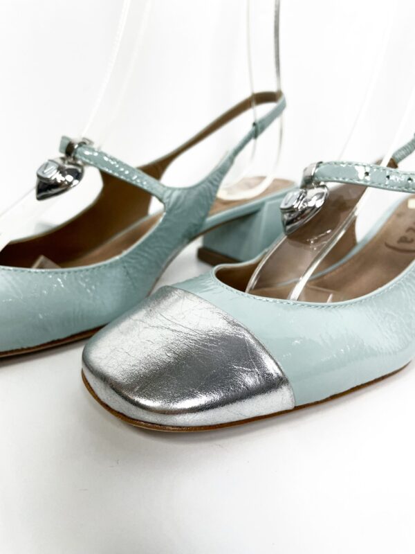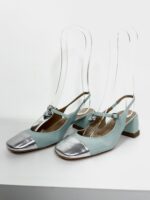 Sandália salto bloco azul e bico prata VICENZA – 36 – VENDIDO SIST OTO