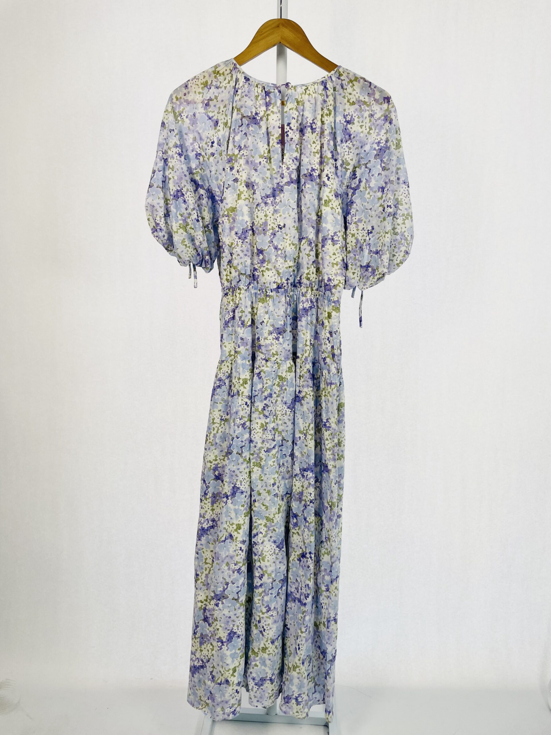 Vestido midi vermelho com estampa floral rosa torcido no decote e mangas longas CRIS BARROS - 42 - VENDIDO SISTEMA OTO