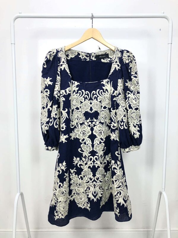 Vestido longo azul marinho recorte na cintura e detalhe pérolas IORANE - 40 *nunca usado*